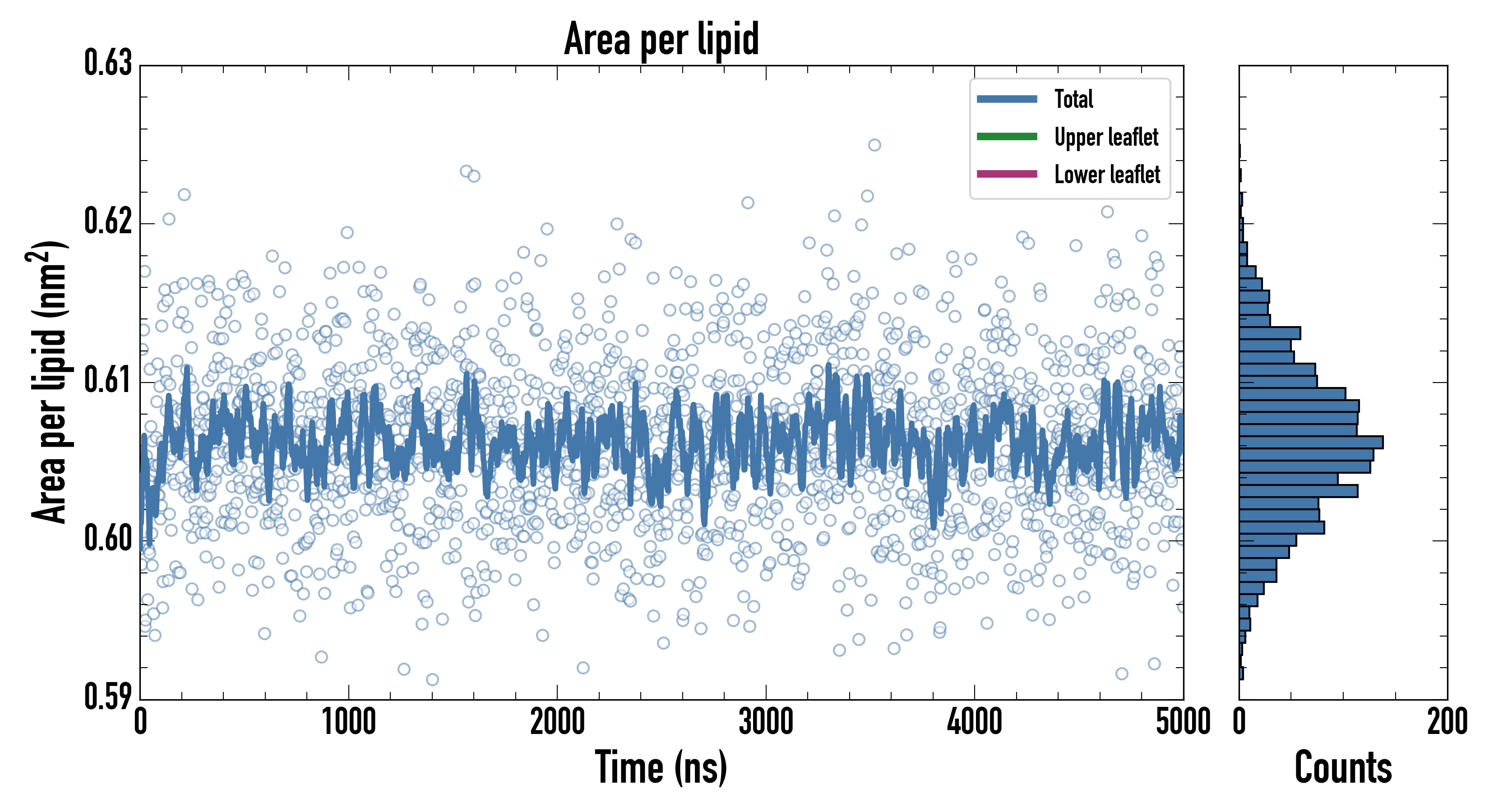 Upper leaflet (nm2): 0.606310000 ± 0.000929892