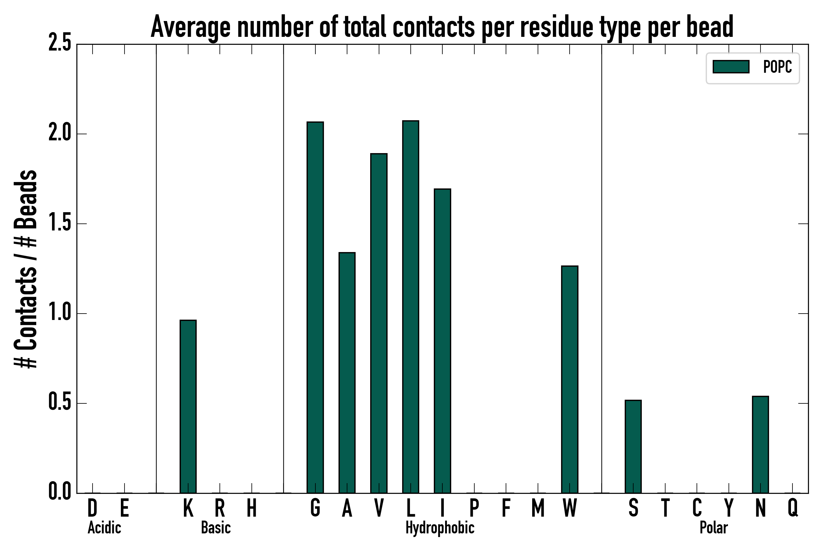 Number of total contacts per residue type: