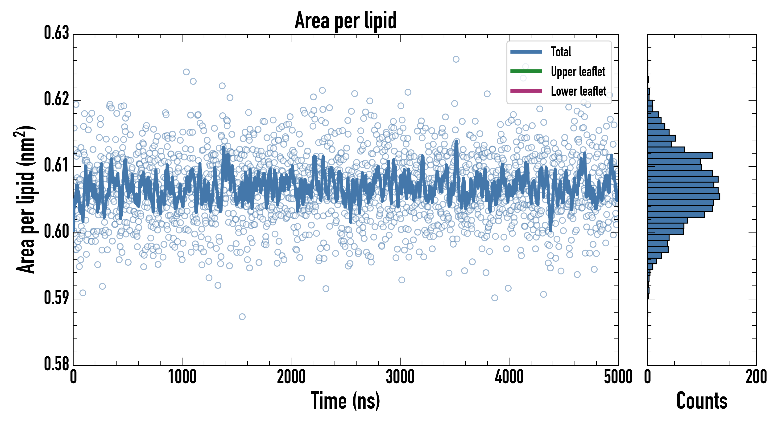Lower leaflet (nm2): 0.60696200 ± 0.00101011