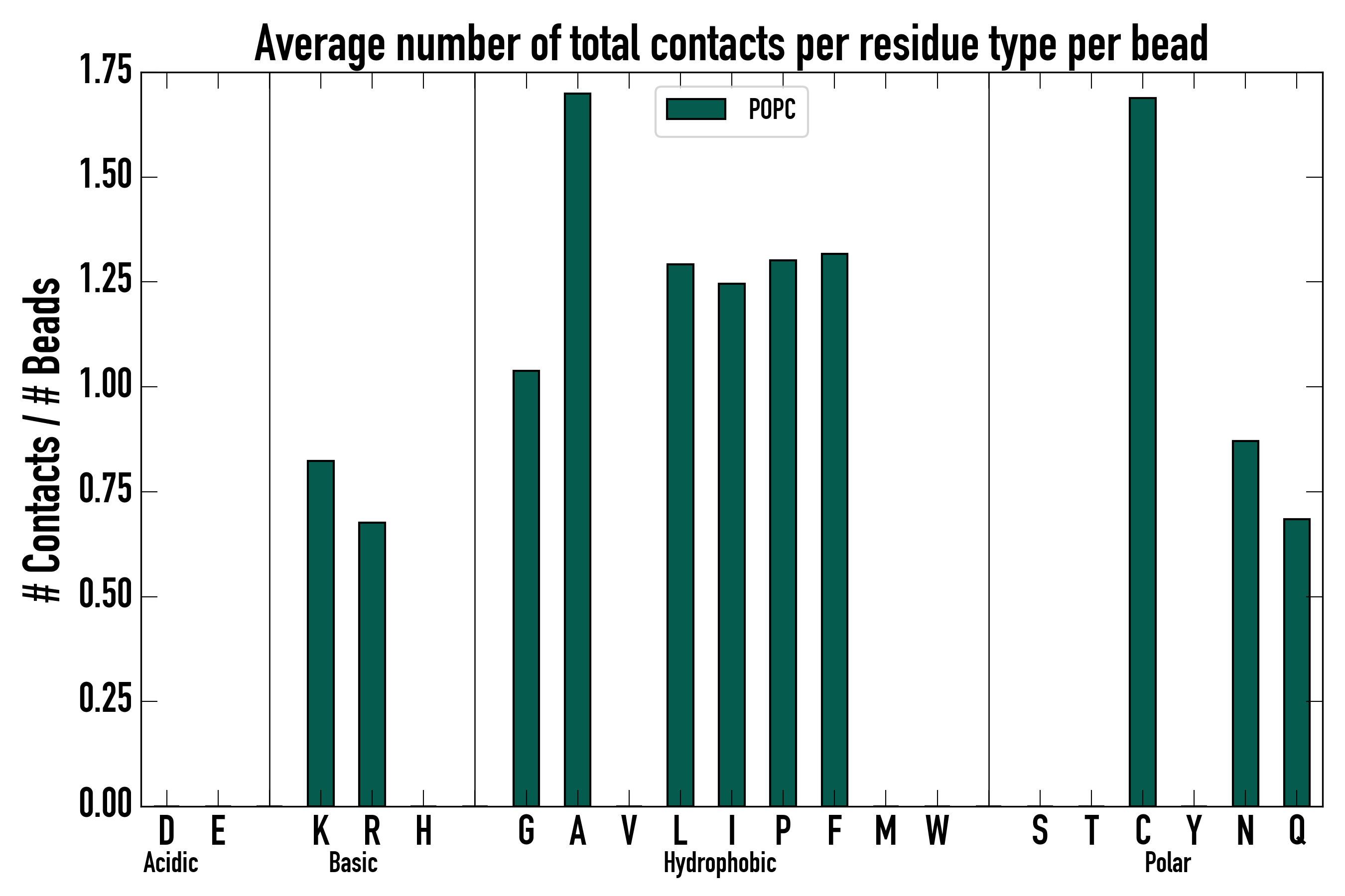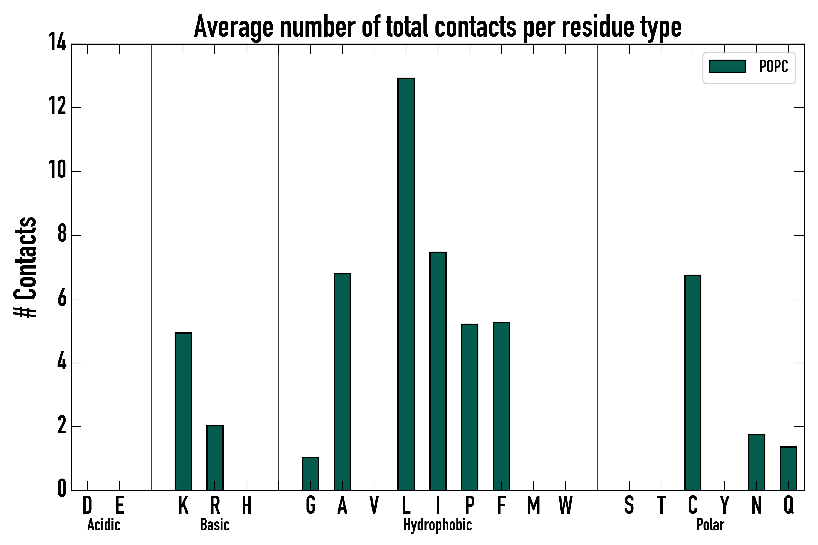 Number of total contacts per residue type: