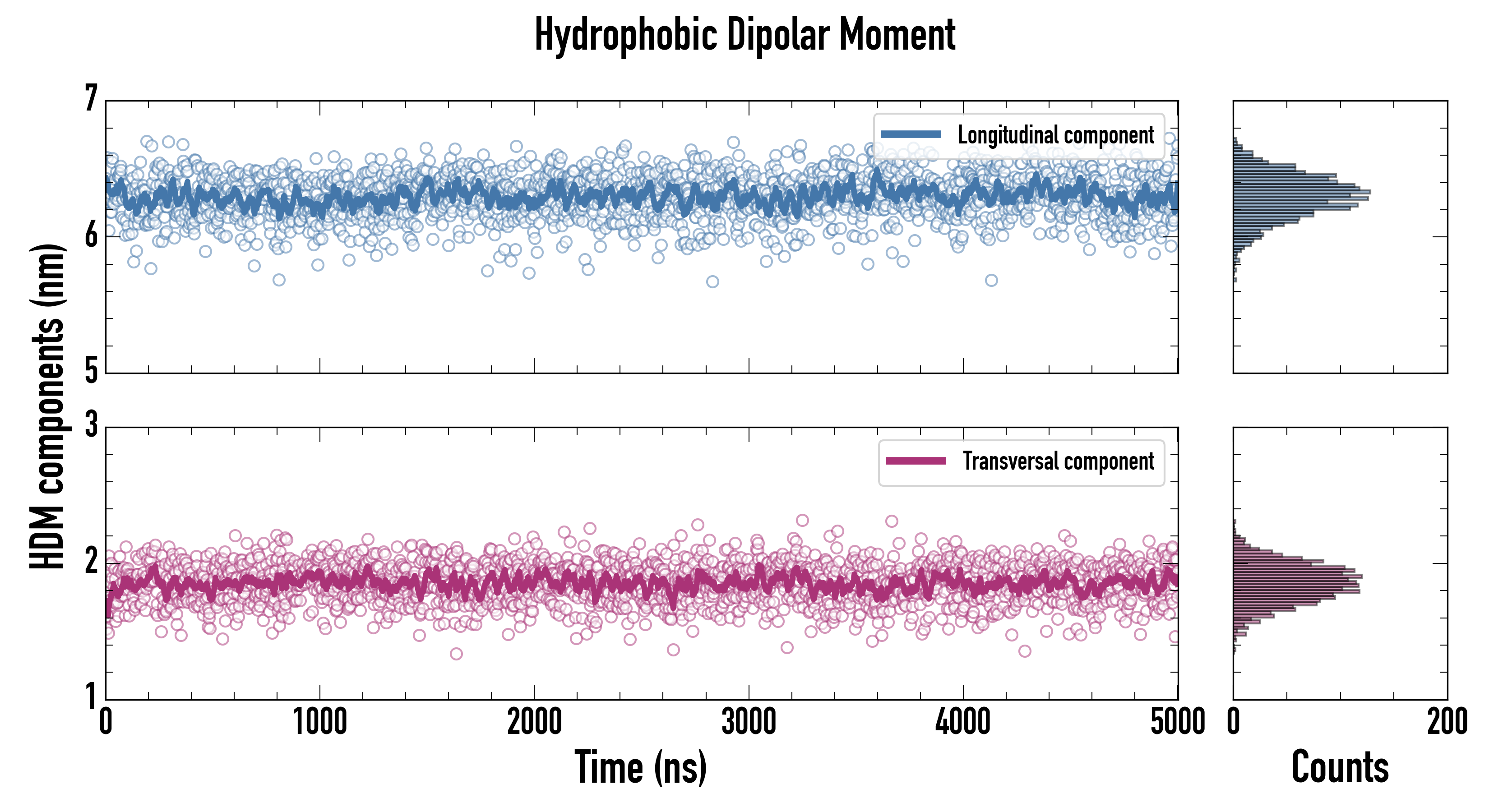 Longitudinal (e nm): 0.84 Transversal (e nm): 1.48 Hydrophobic Dipolar Moment (nm): 6.67