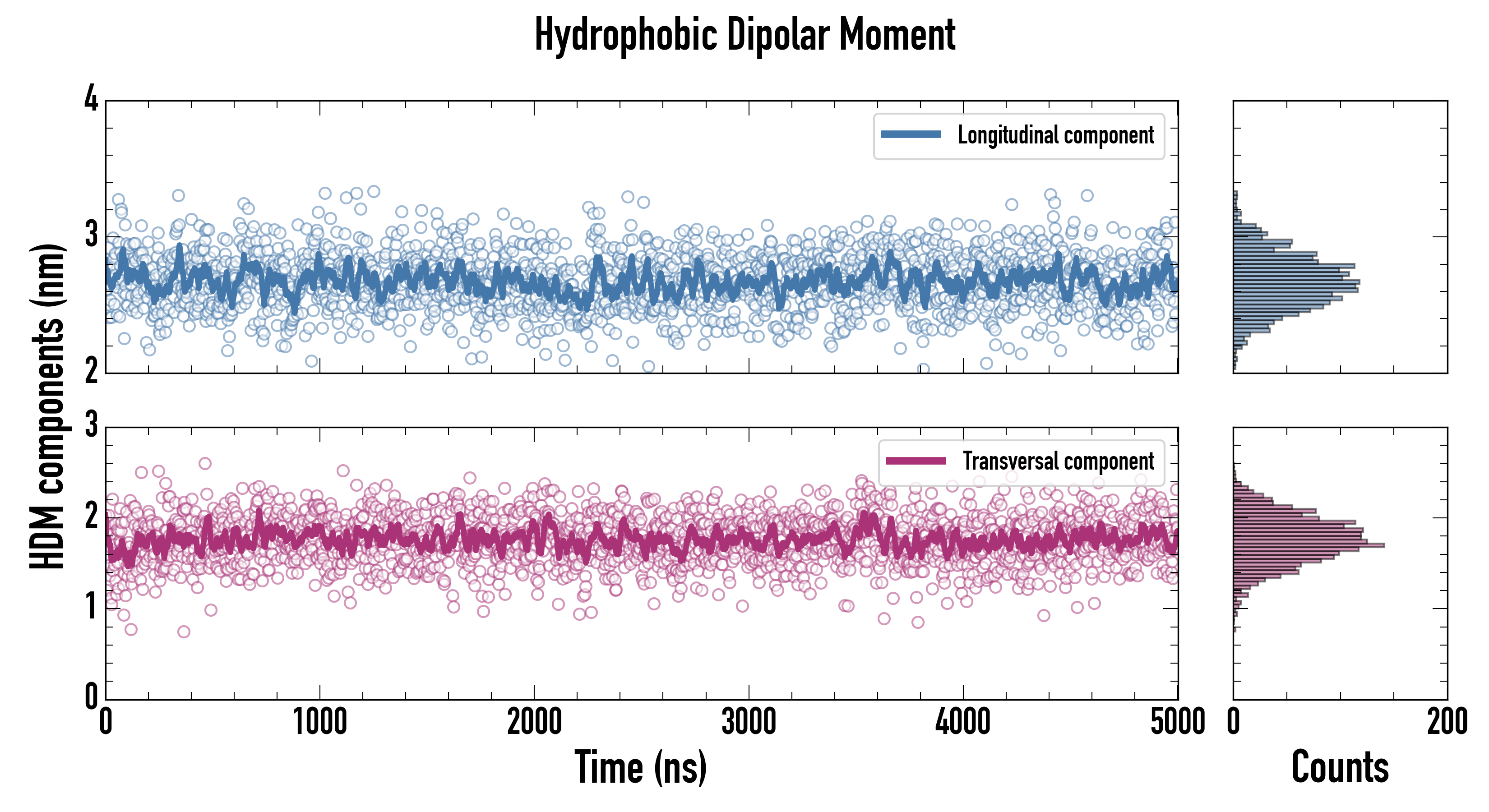 Longitudinal (e nm): 10.16 Transversal (e nm): 4.18 Hydrophobic Dipolar Moment (nm): 3.6