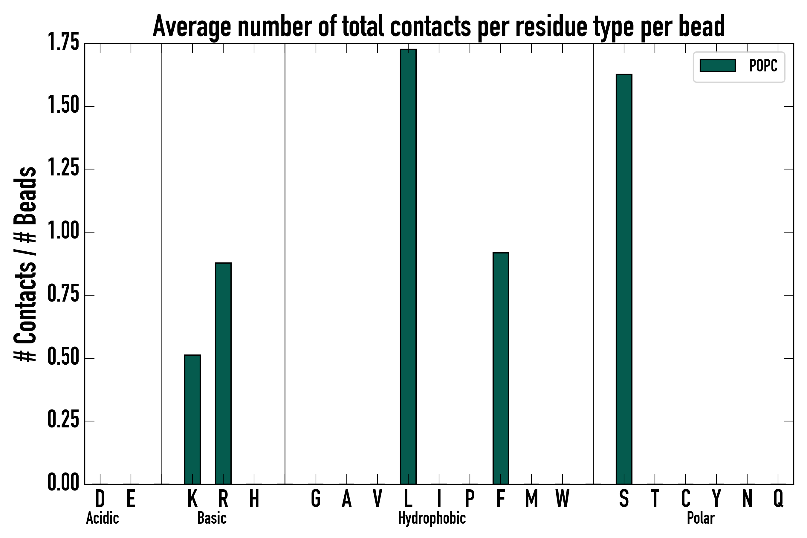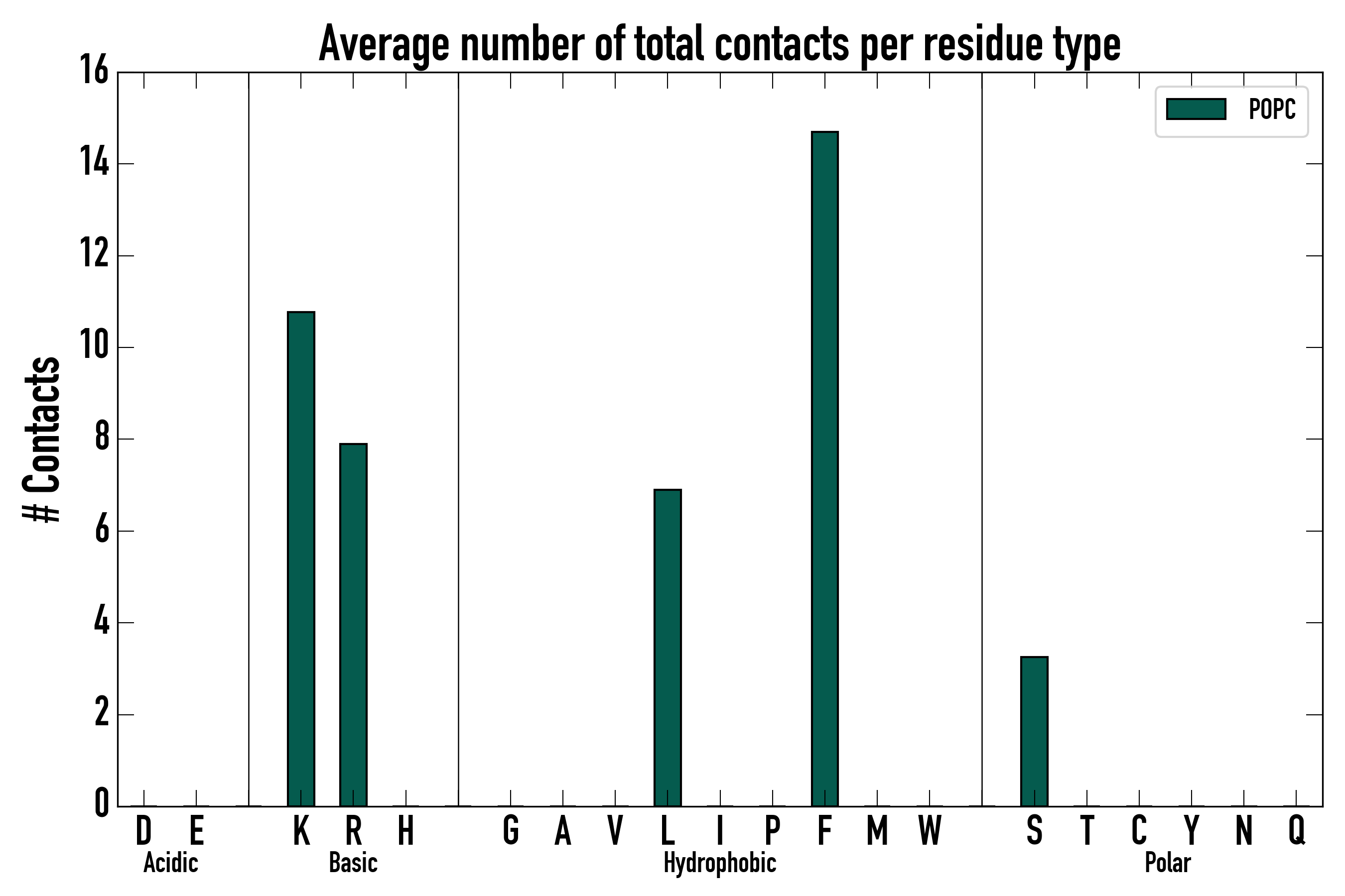 Number of total contacts per residue type: