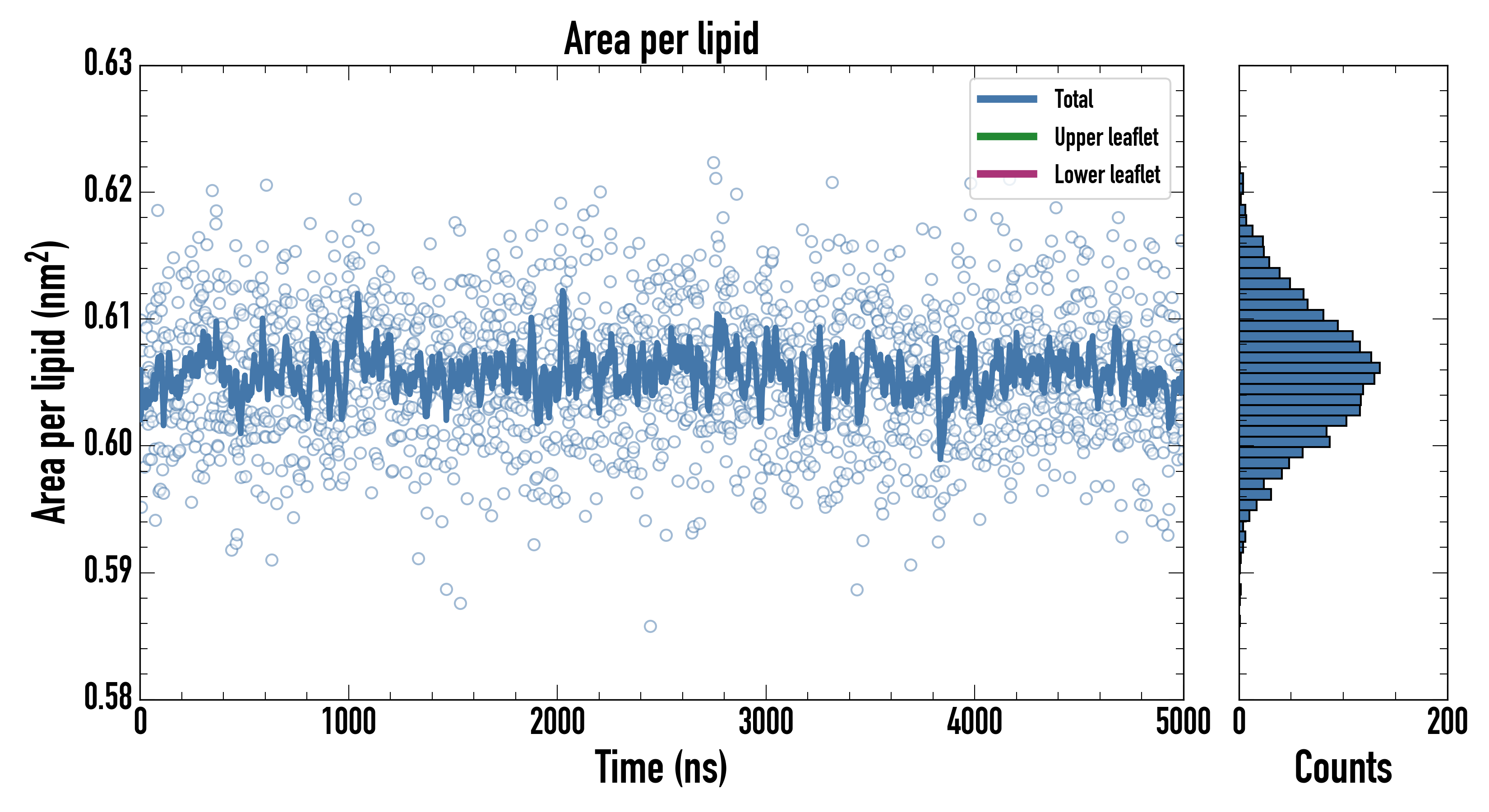 Upper leaflet (nm2): 0.605615000 ± 0.000852636