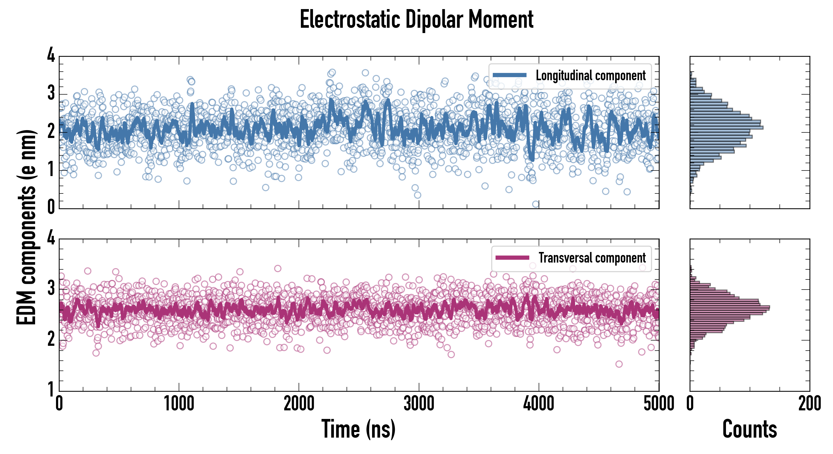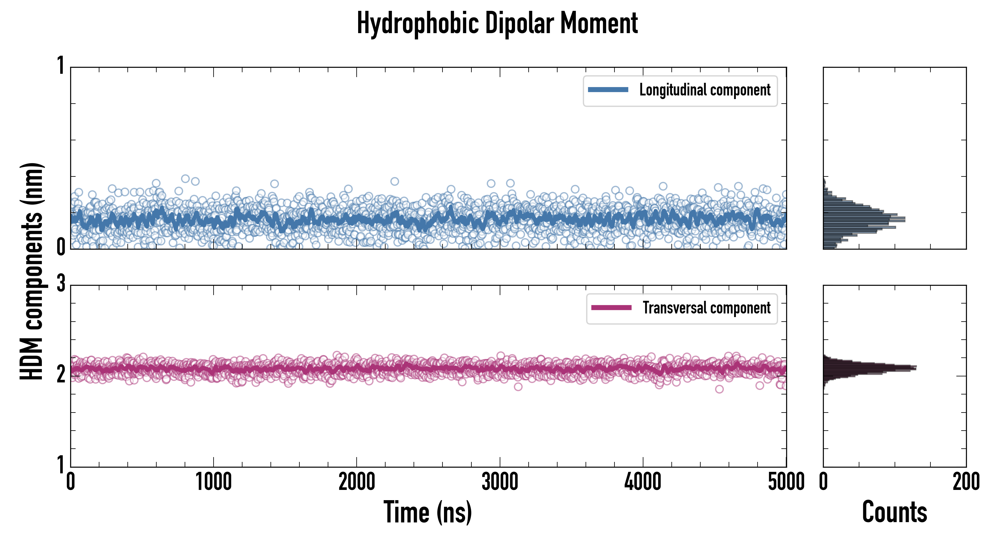 Longitudinal (e nm): 3.72 Transversal (e nm): 2.25 Hydrophobic Dipolar Moment (nm): 2.07
