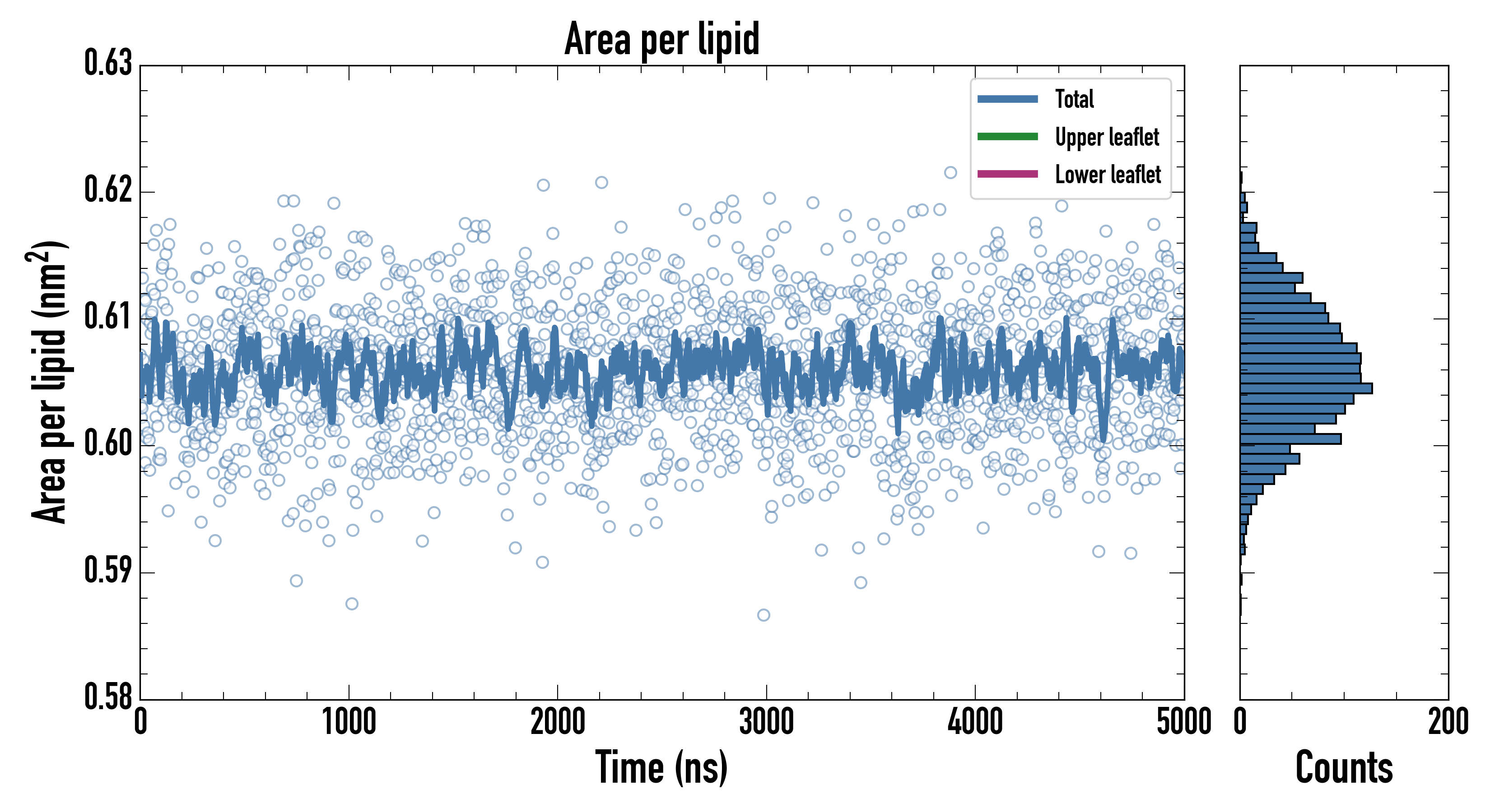 Upper leaflet (nm2): 0.606140000 ± 0.000784149