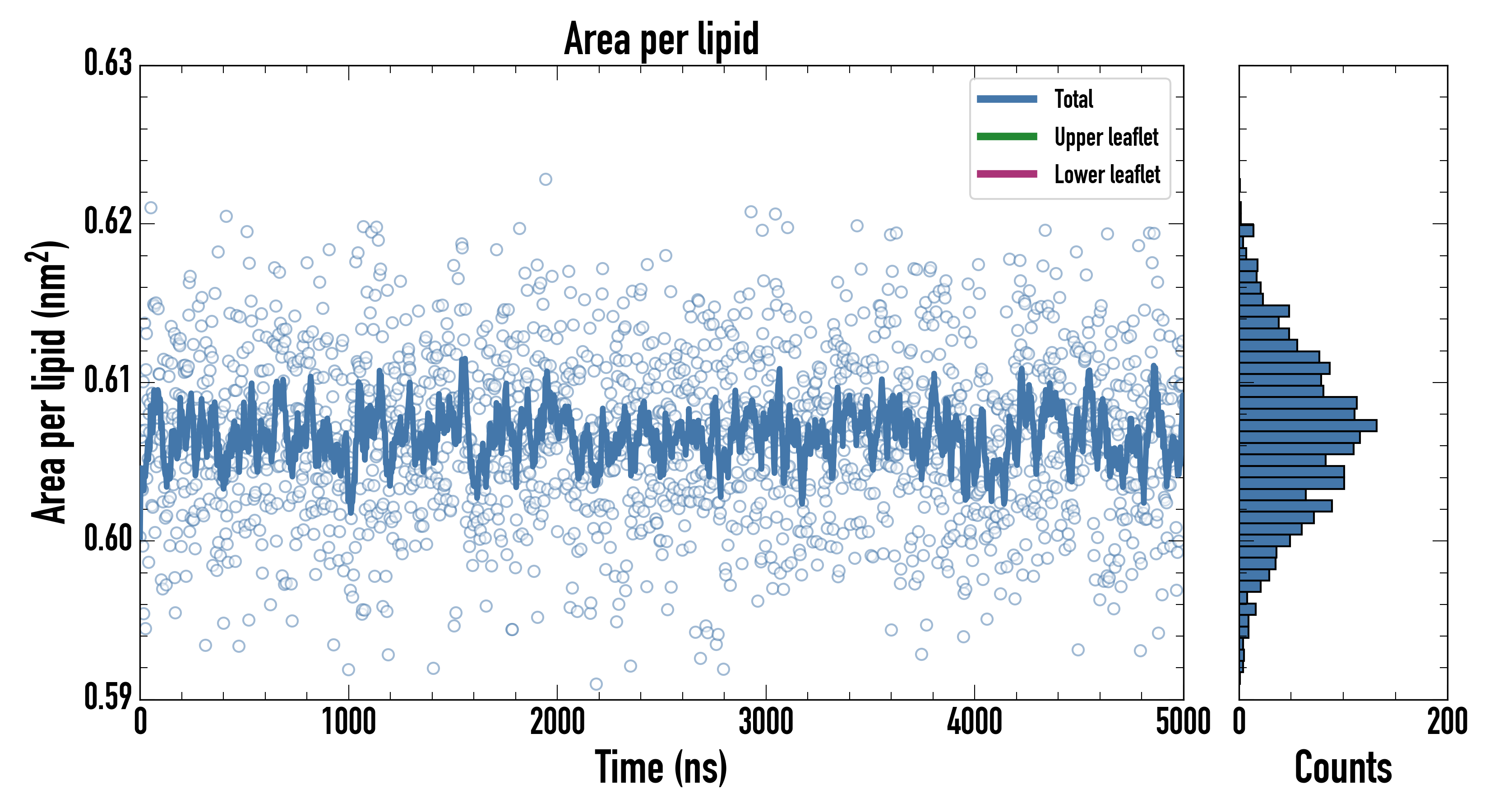 Upper leaflet (nm2): 0.6065960 ± 0.0010425