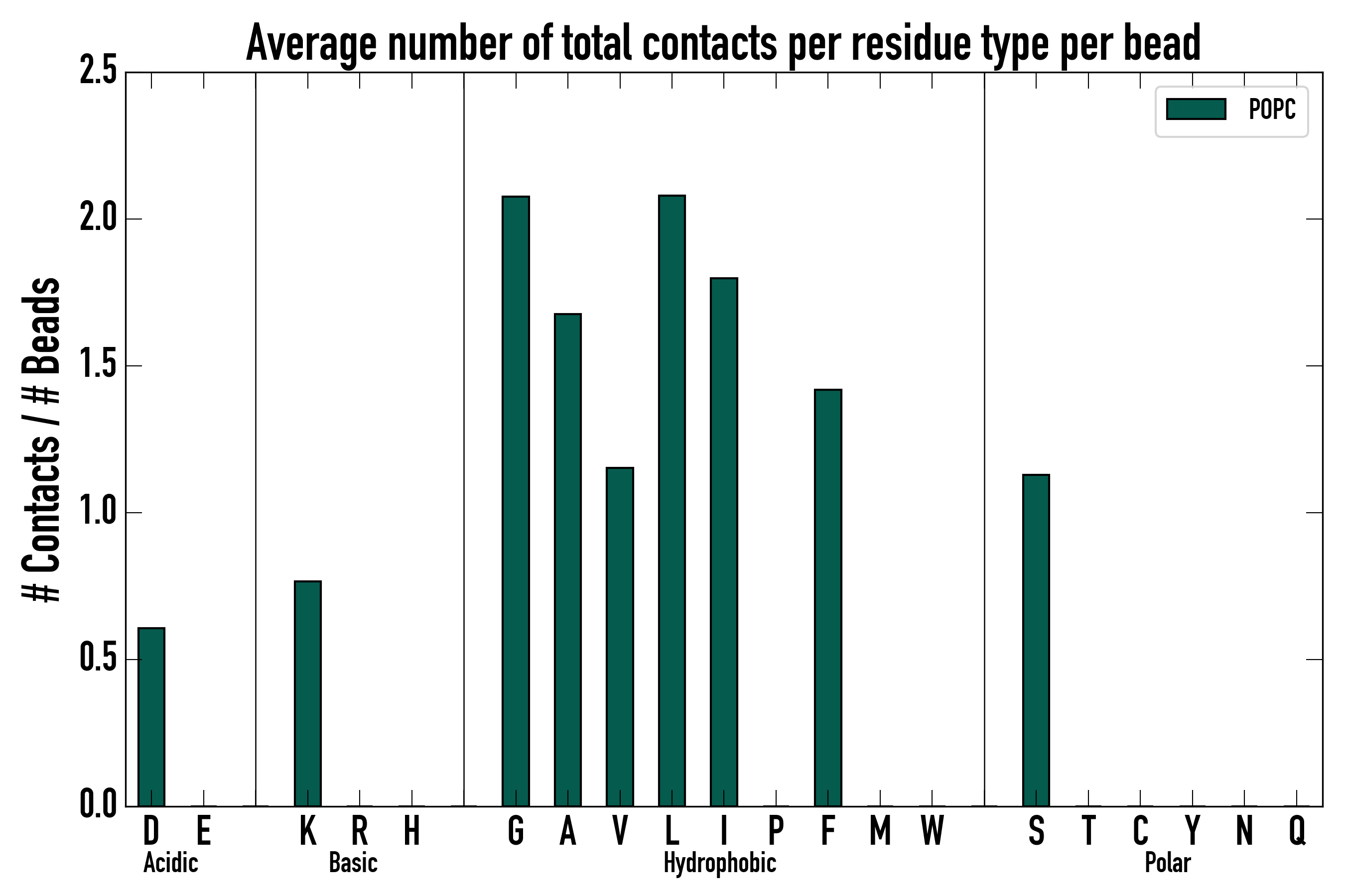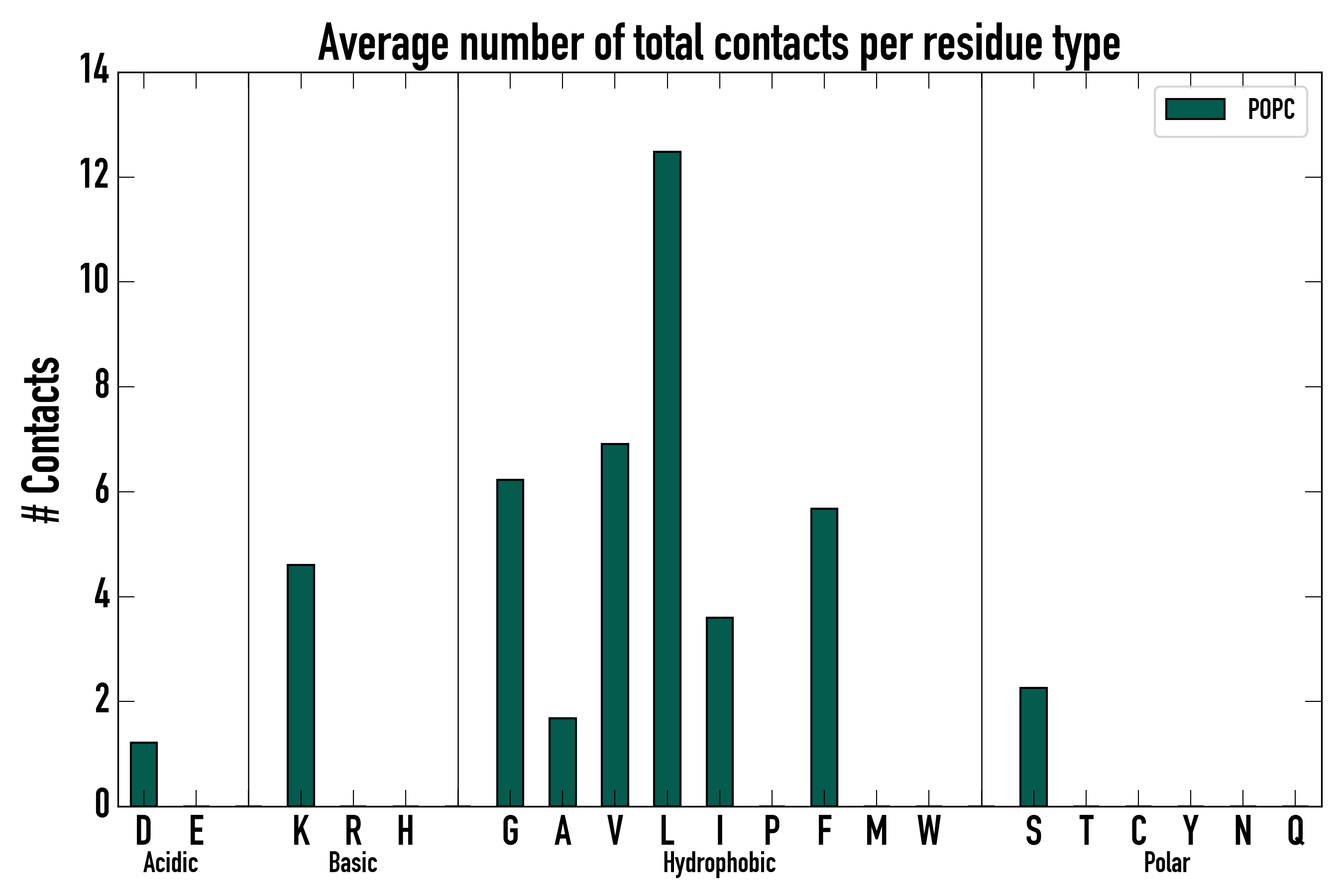 Number of total contacts per residue type: