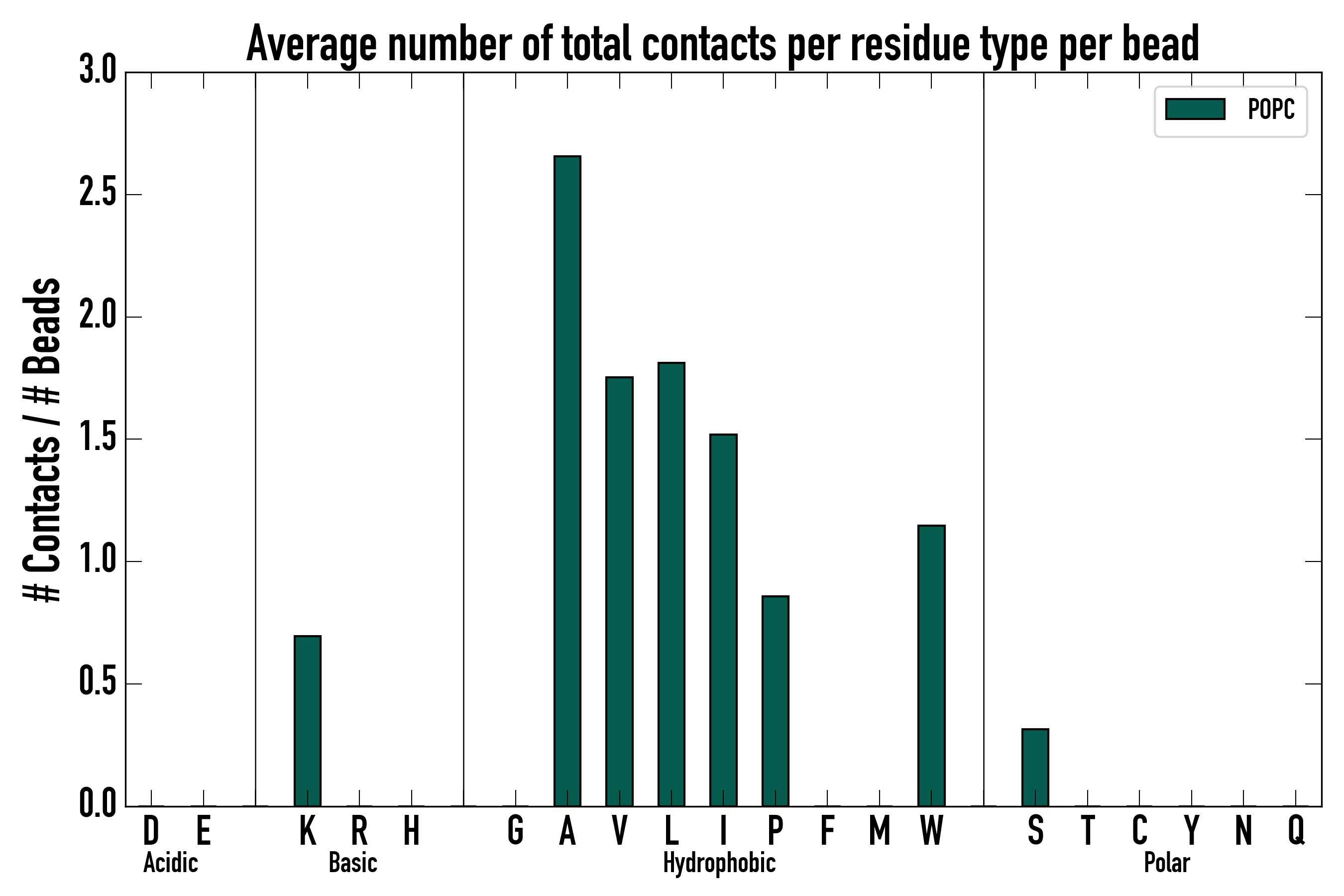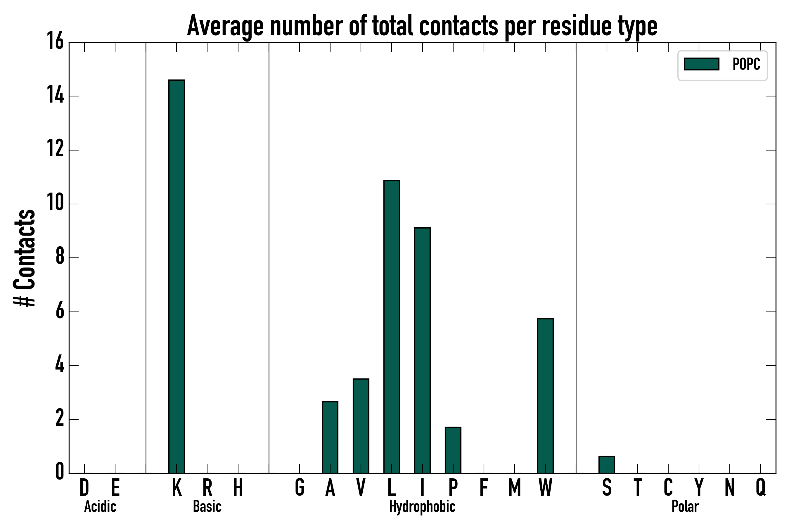 Number of total contacts per residue type: