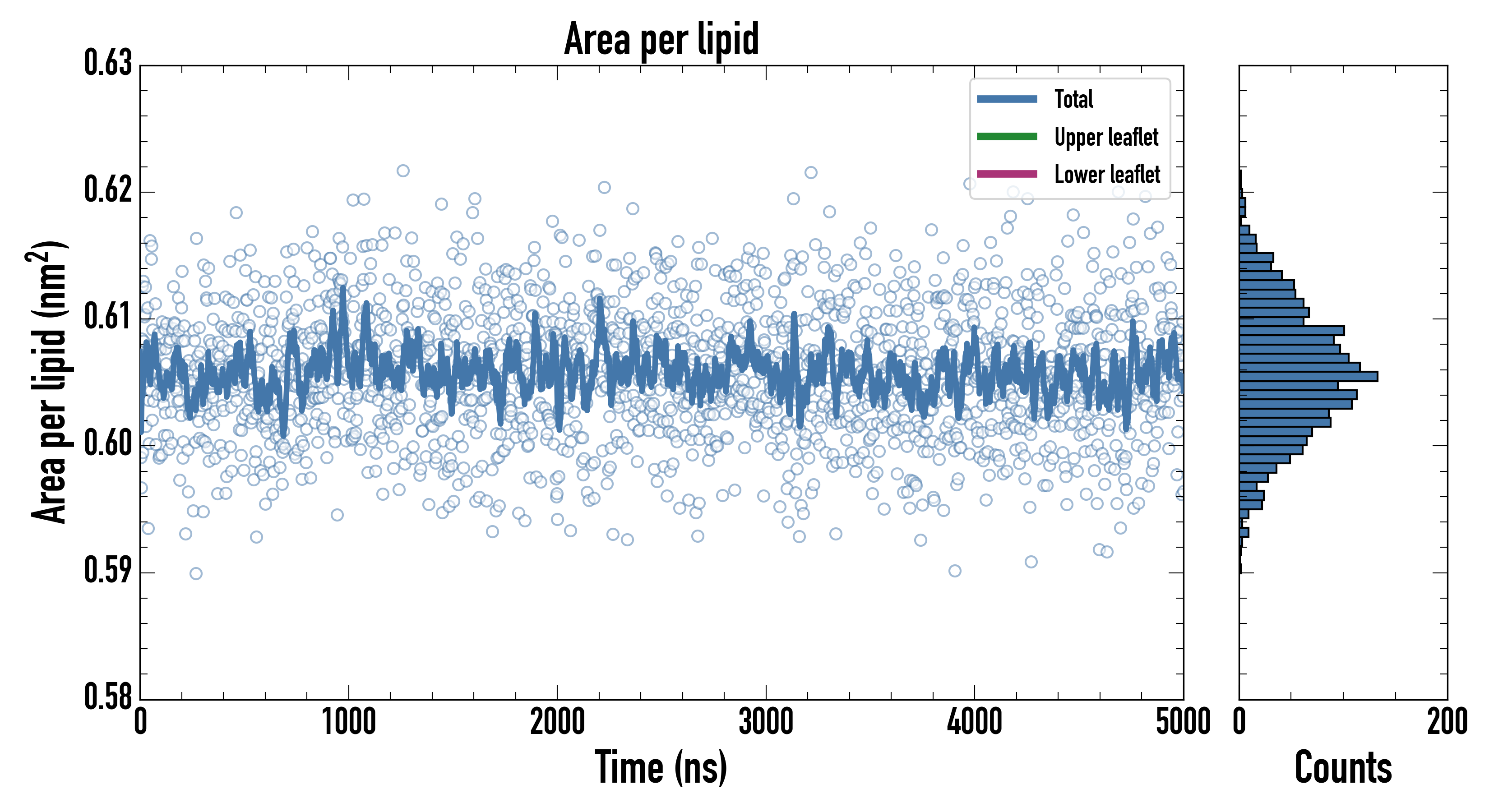 Upper leaflet (nm2): 0.605551000 ± 0.000815801