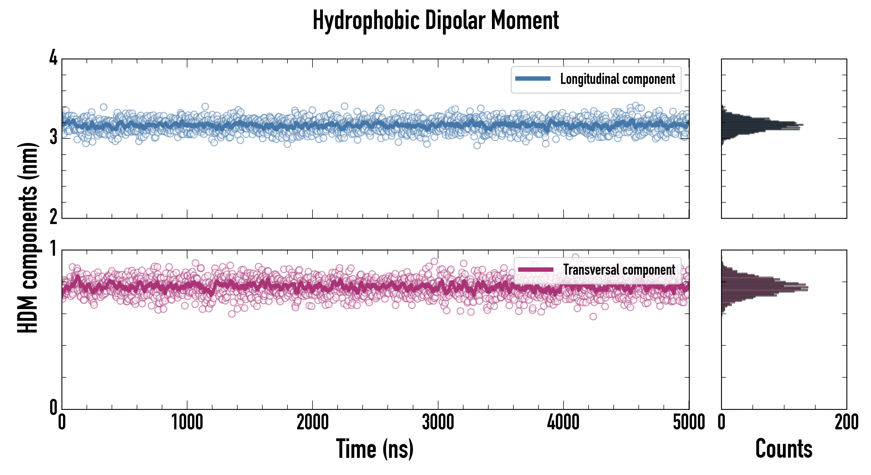 Longitudinal (e nm): 3.08 Transversal (e nm): 1.4 Hydrophobic Dipolar Moment (nm): 3.21