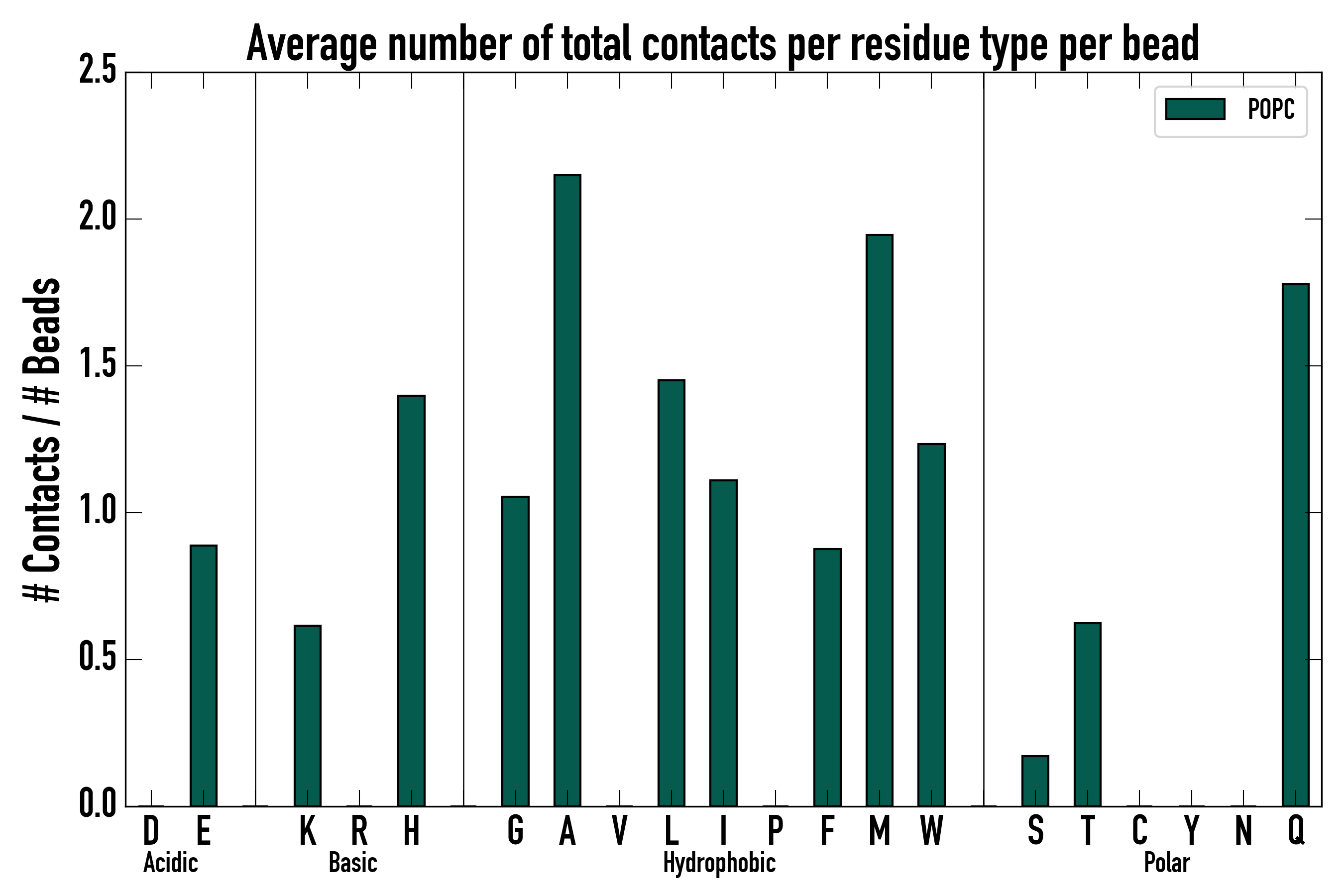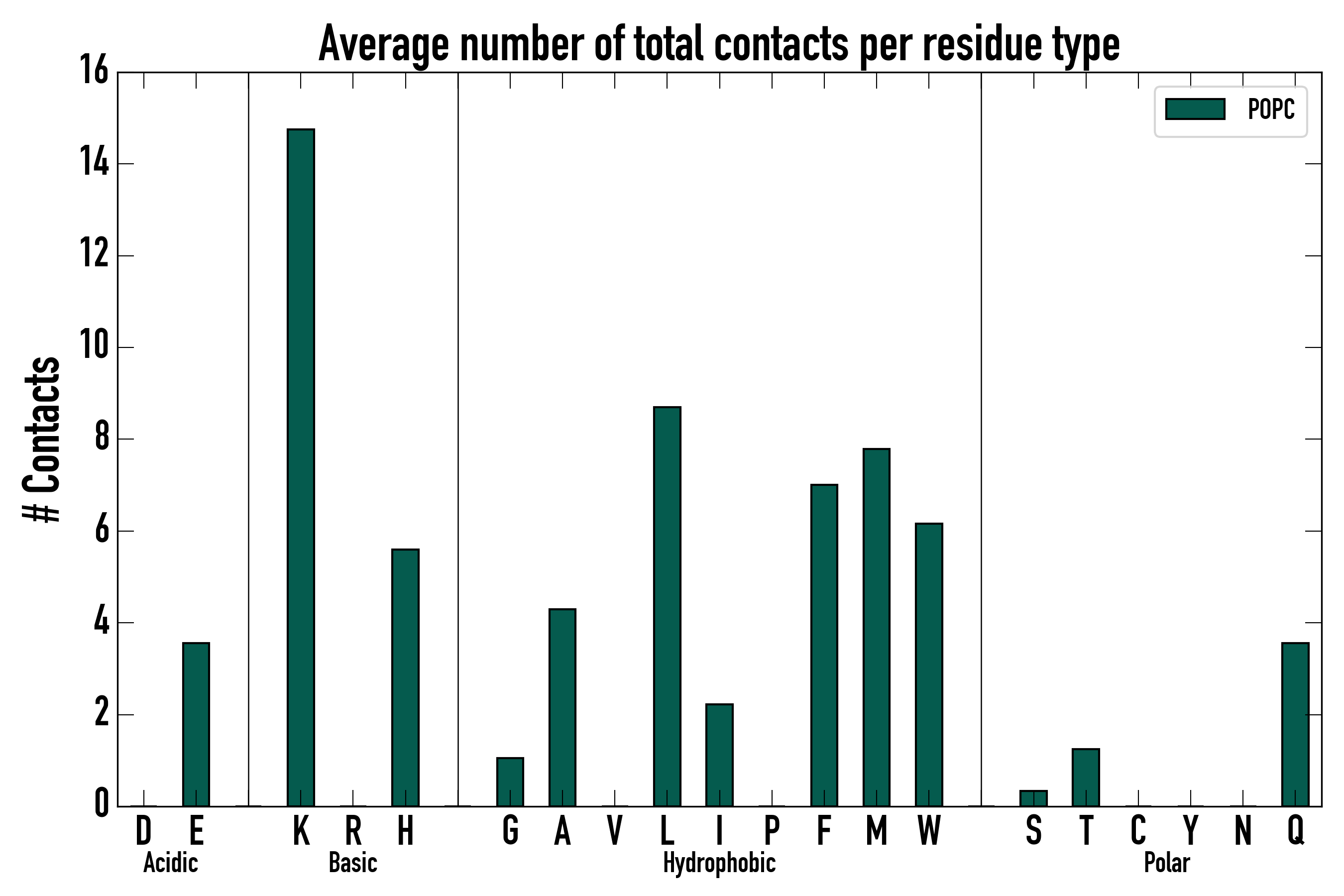 Number of total contacts per residue type: