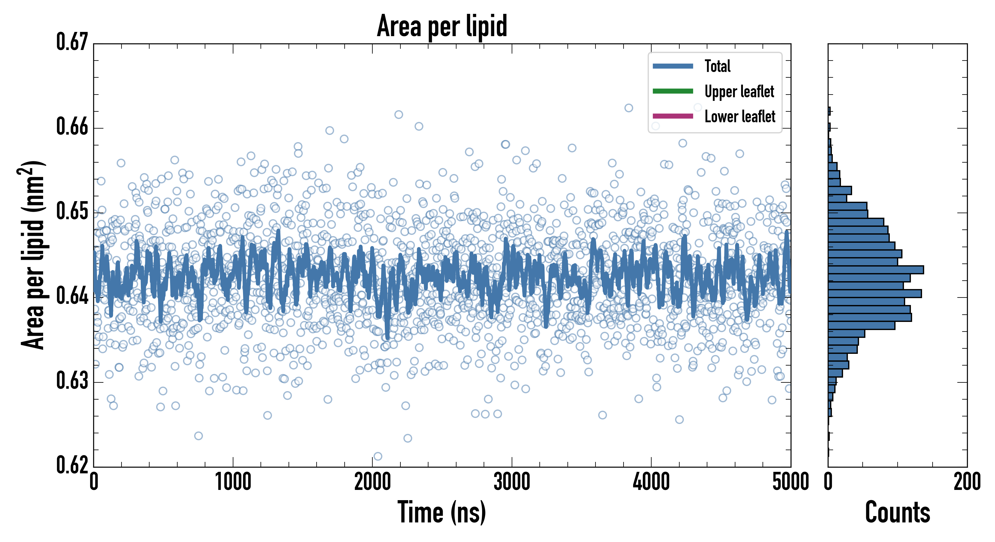 Upper leaflet (nm2): 0.642274000 ± 0.000947644