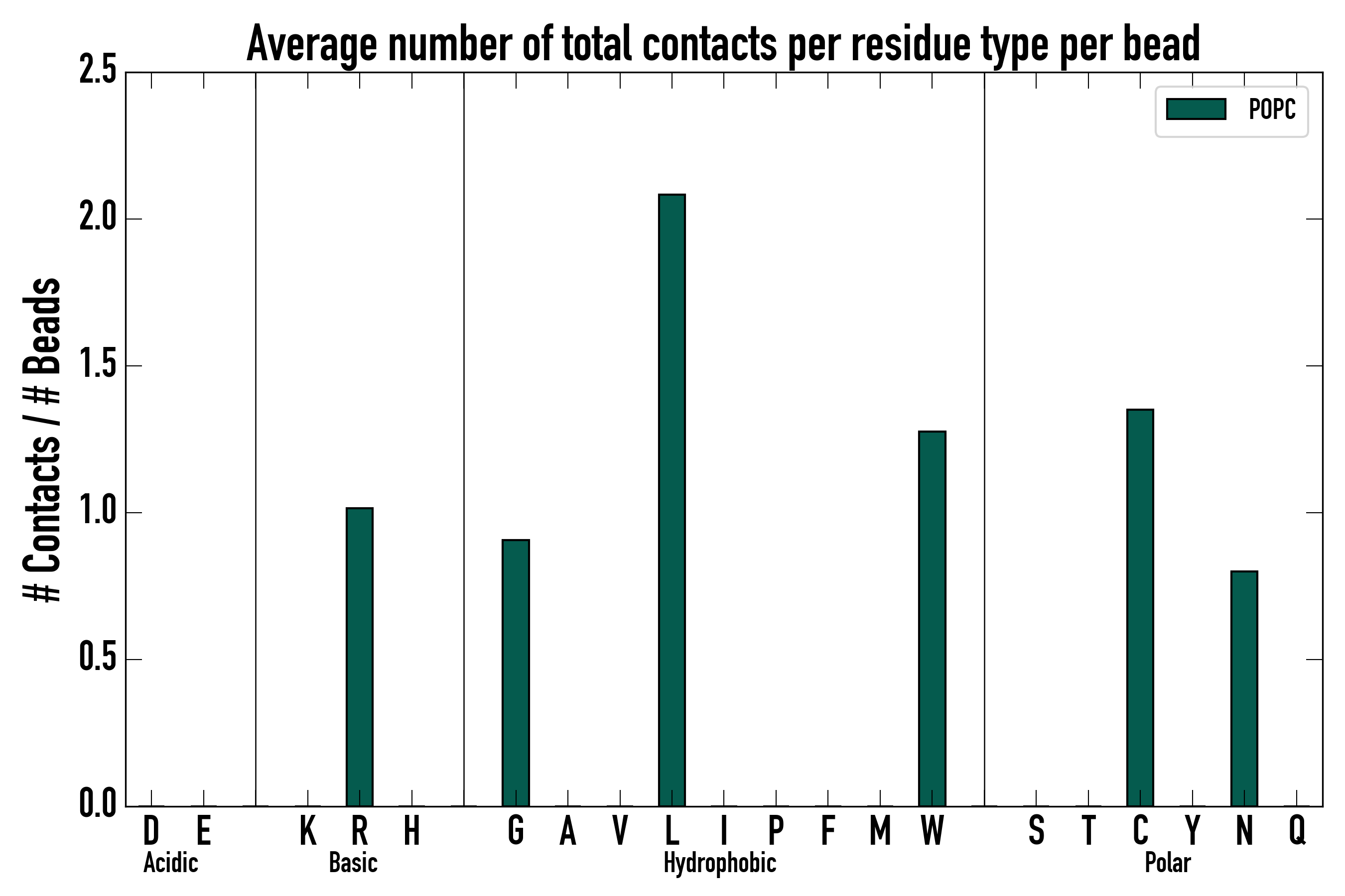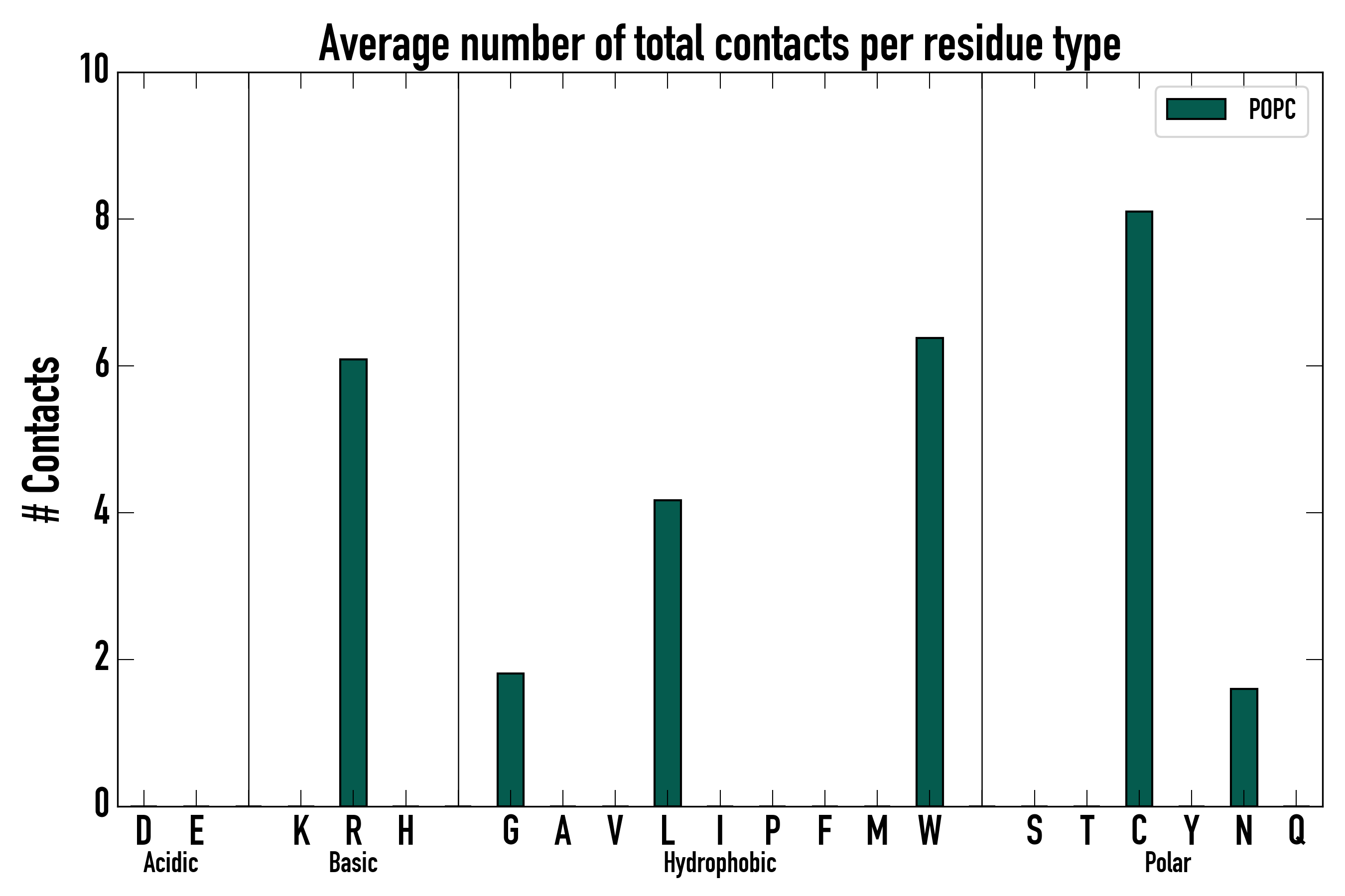 Number of total contacts per residue type: