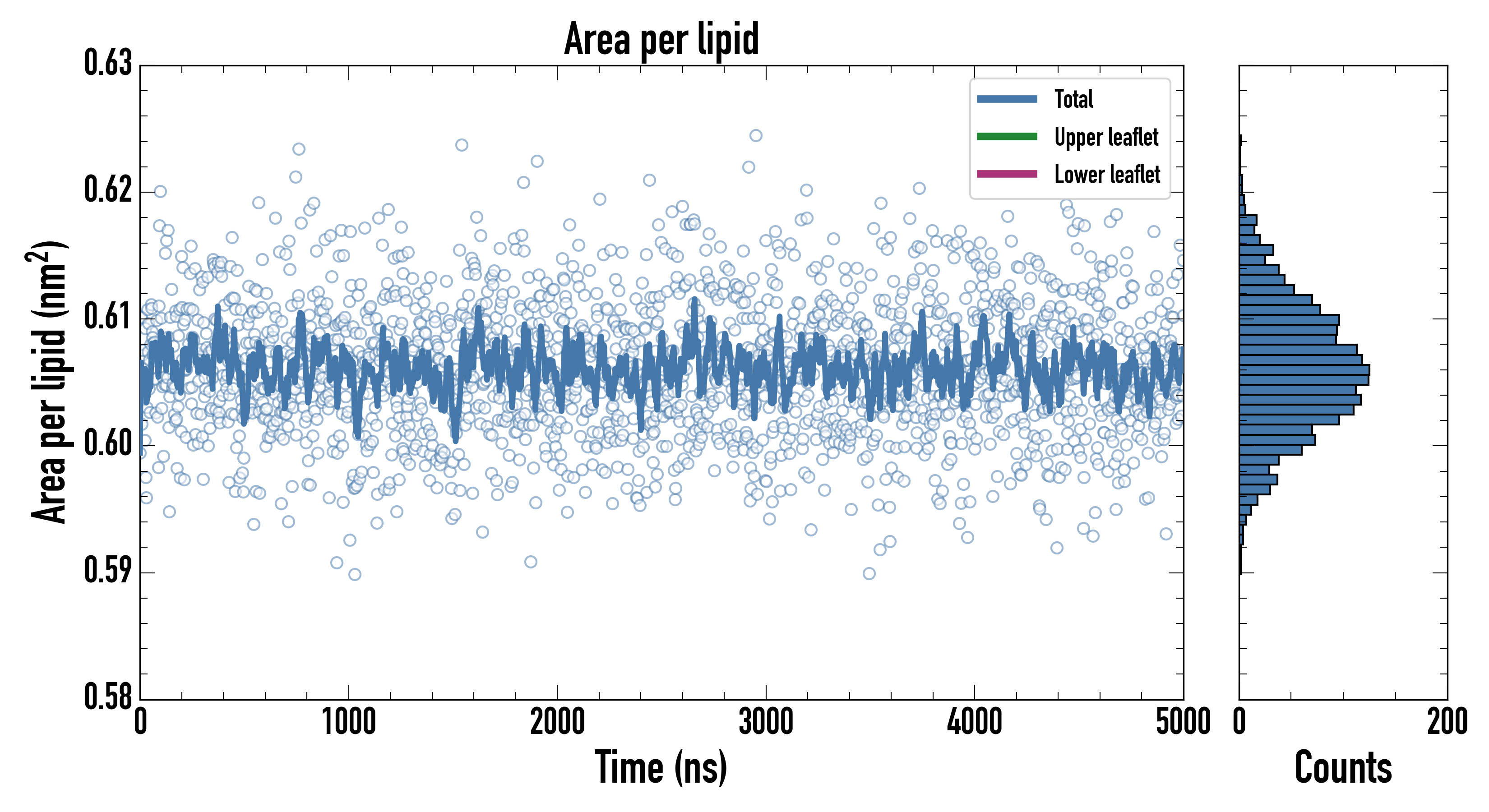 Upper leaflet (nm2): 0.606100000 ± 0.000887745