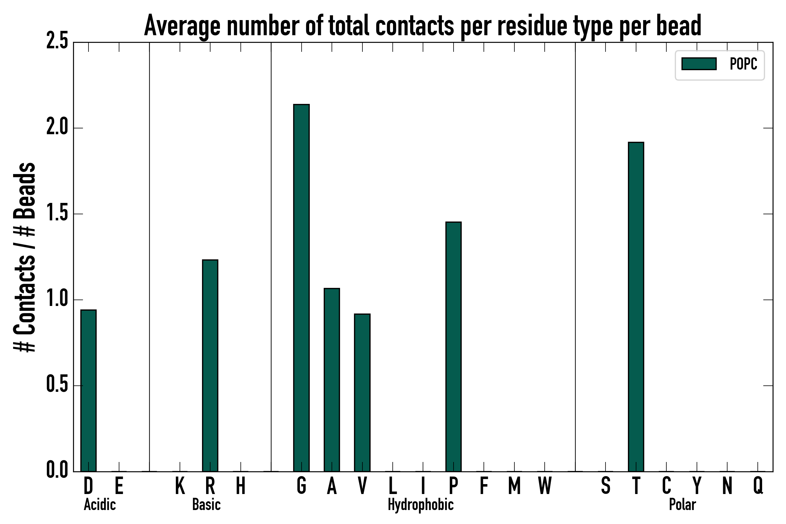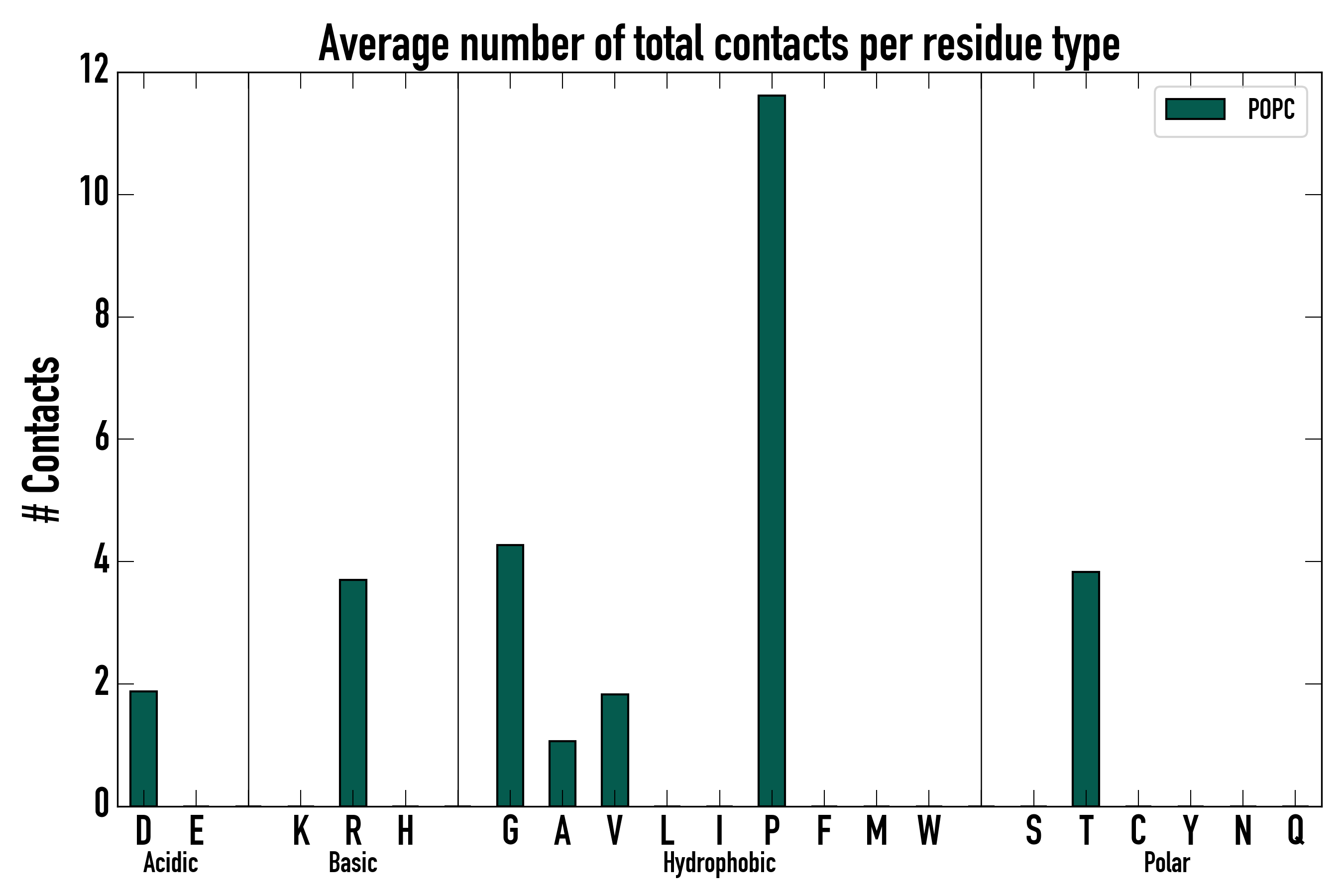 Number of total contacts per residue type:
