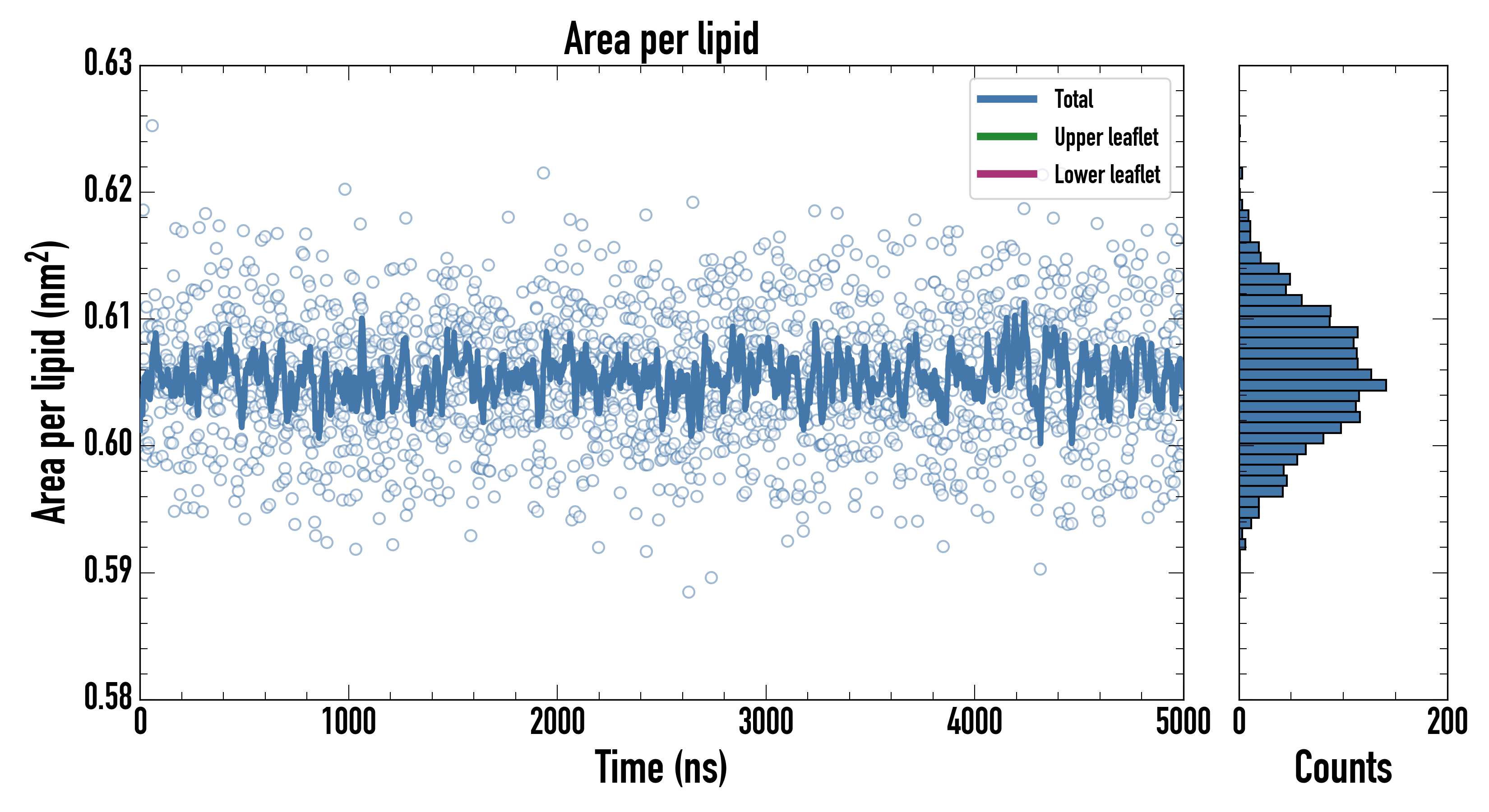 Upper leaflet (nm2): 0.605809000 ± 0.000995618