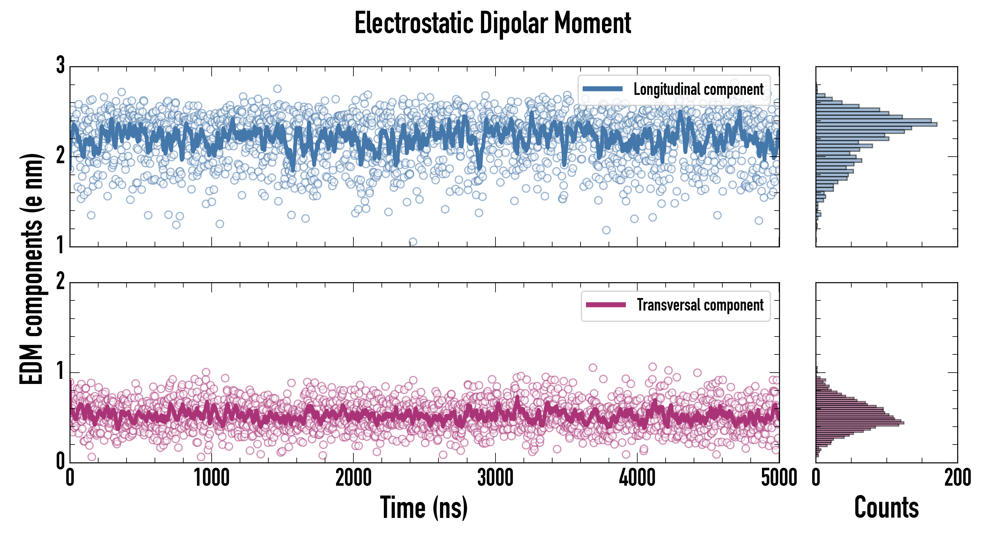 Longitudinal (e nm): 2.51 Transversal (e nm): 0.41 Hydrophobic Dipolar Moment (nm): 5.76