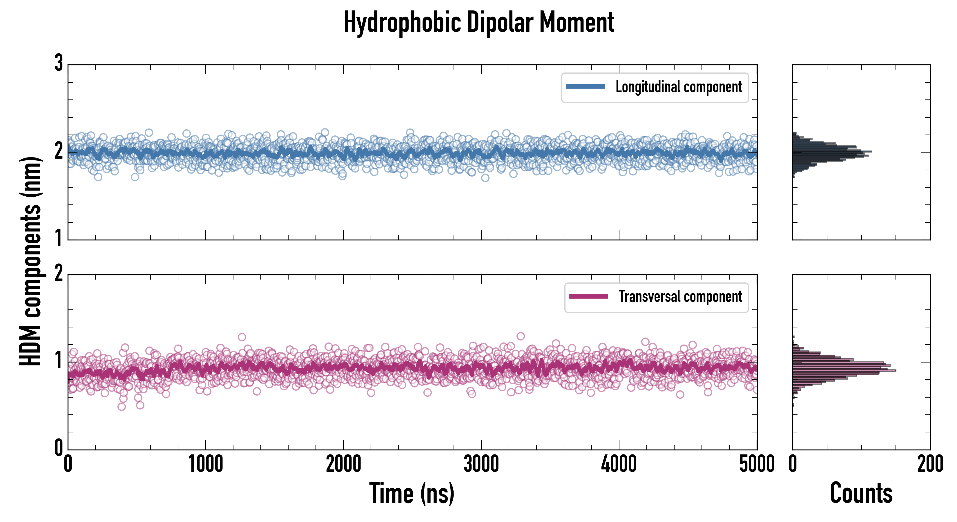 Longitudinal (e nm): 3.38 Transversal (e nm): 0.47 Hydrophobic Dipolar Moment (nm): 2.06