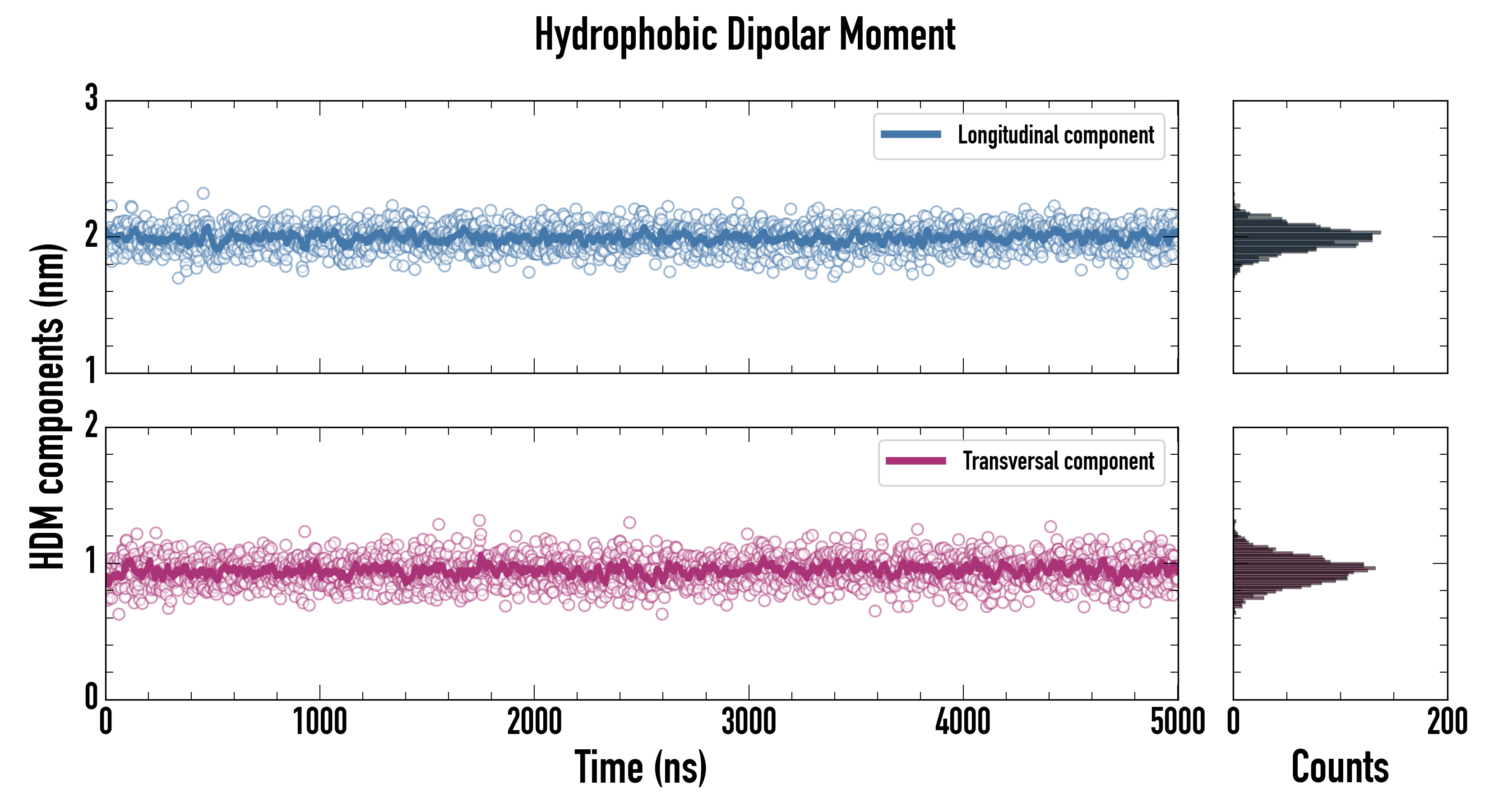 Longitudinal (e nm): 3.38 Transversal (e nm): 0.47 Hydrophobic Dipolar Moment (nm): 2.06