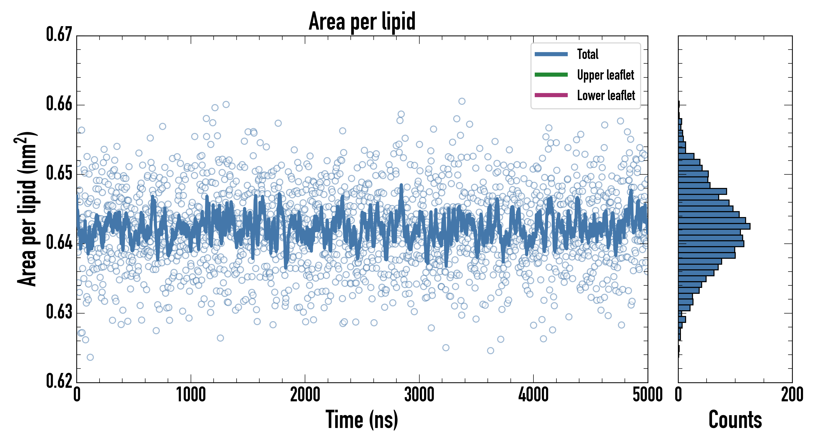 Upper leaflet (nm2): 0.642724000 ± 0.000939236