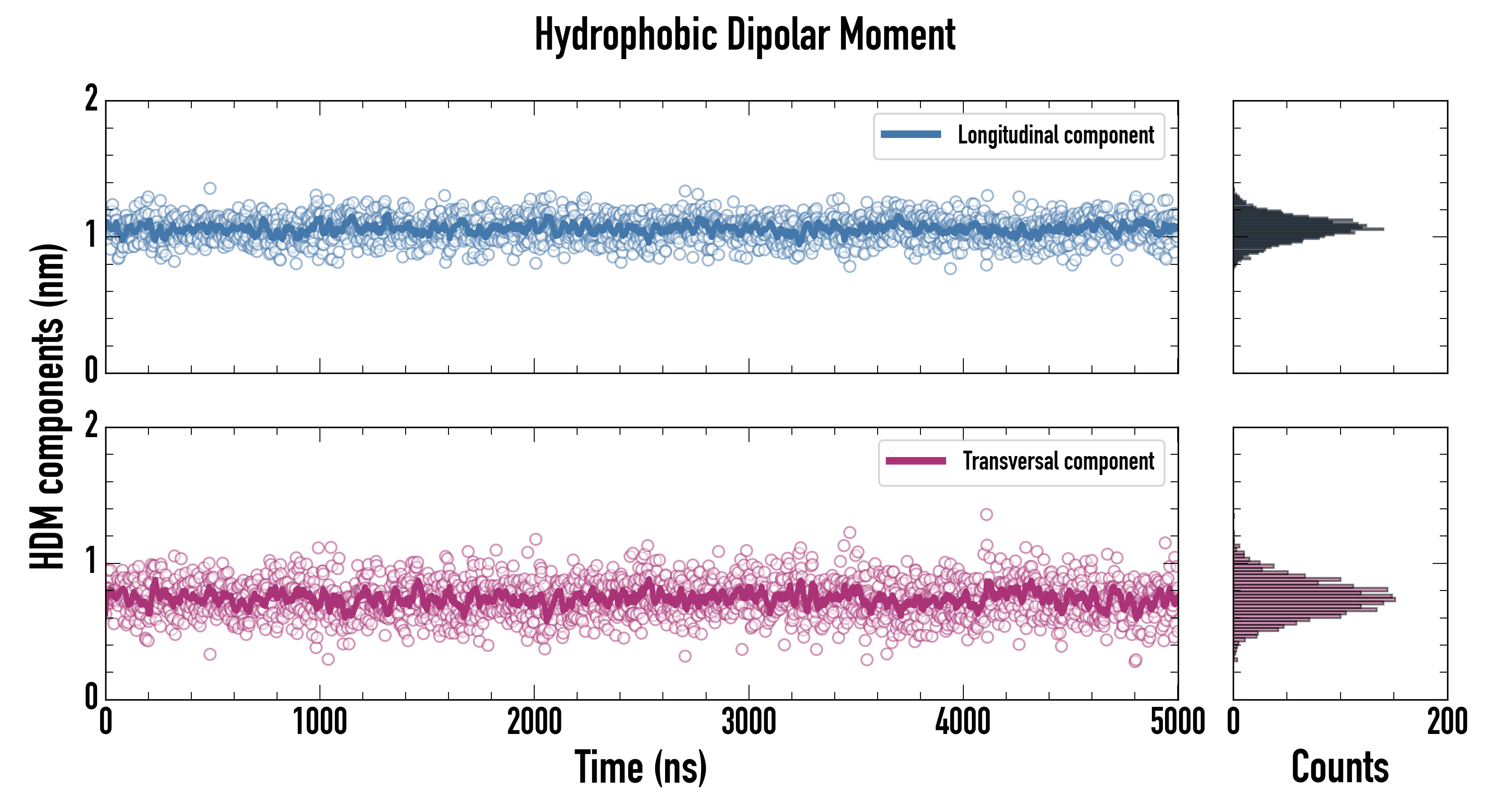 Longitudinal (e nm): 3.58 Transversal (e nm): 1 Hydrophobic Dipolar Moment (nm): 1.37