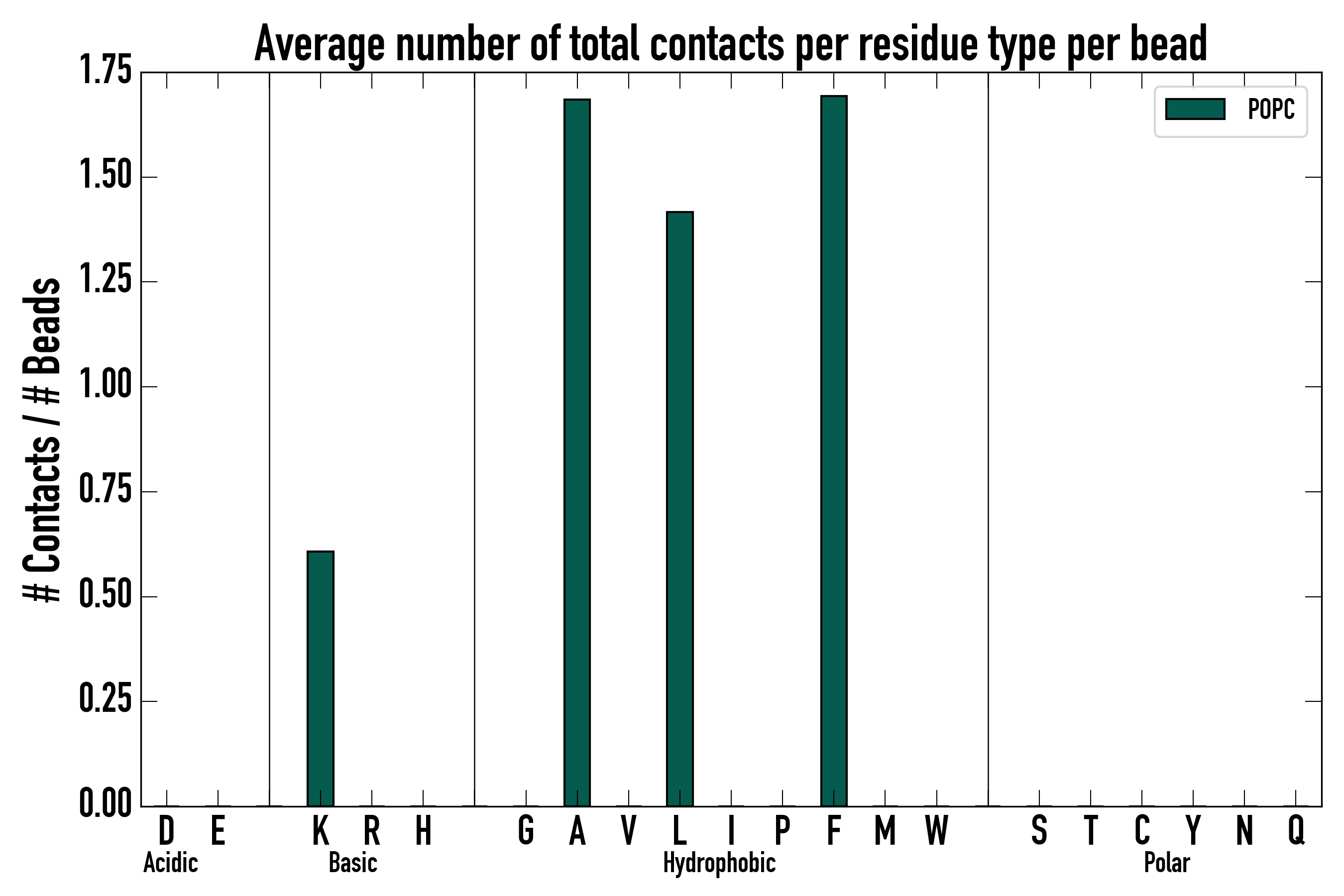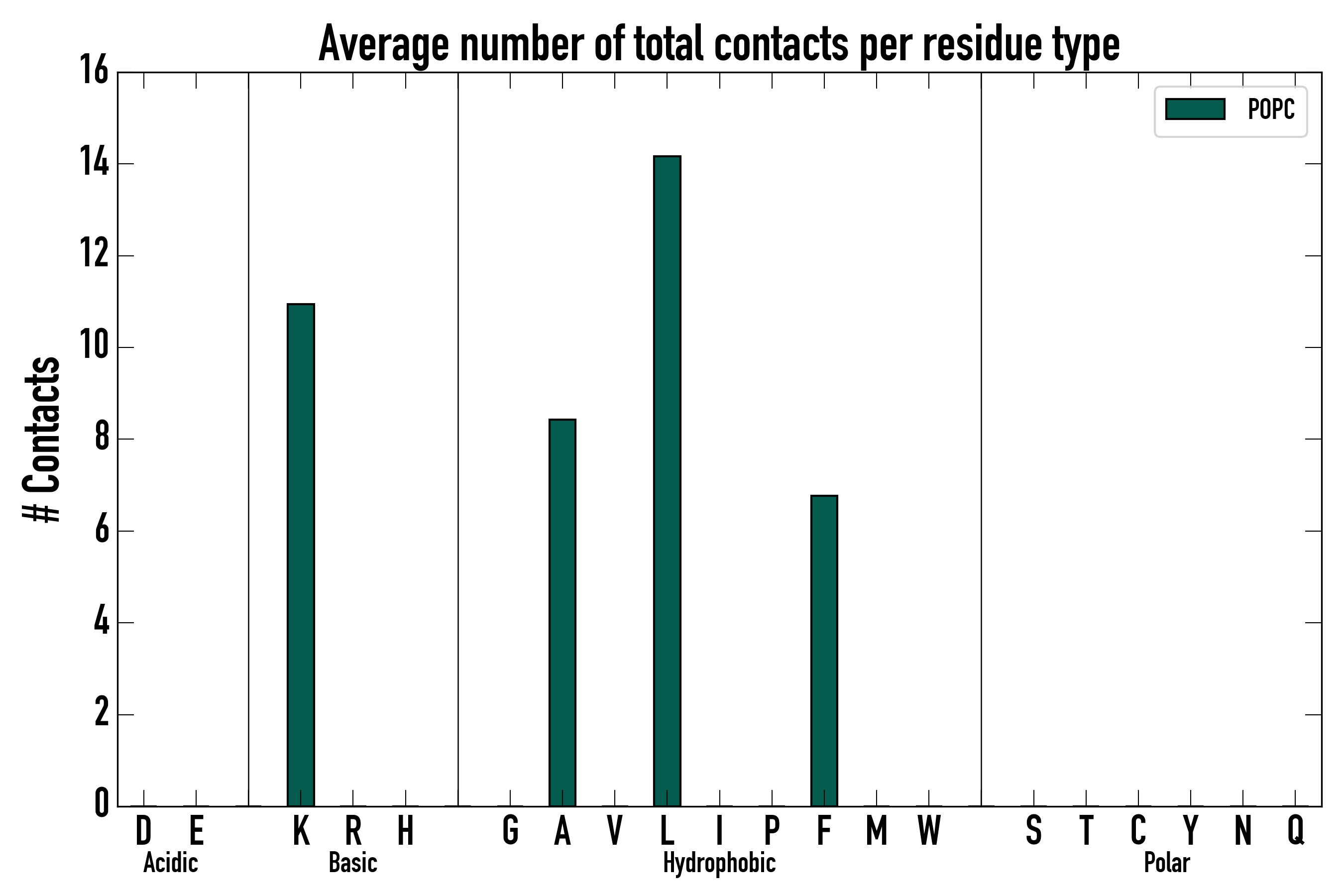 Number of total contacts per residue type: