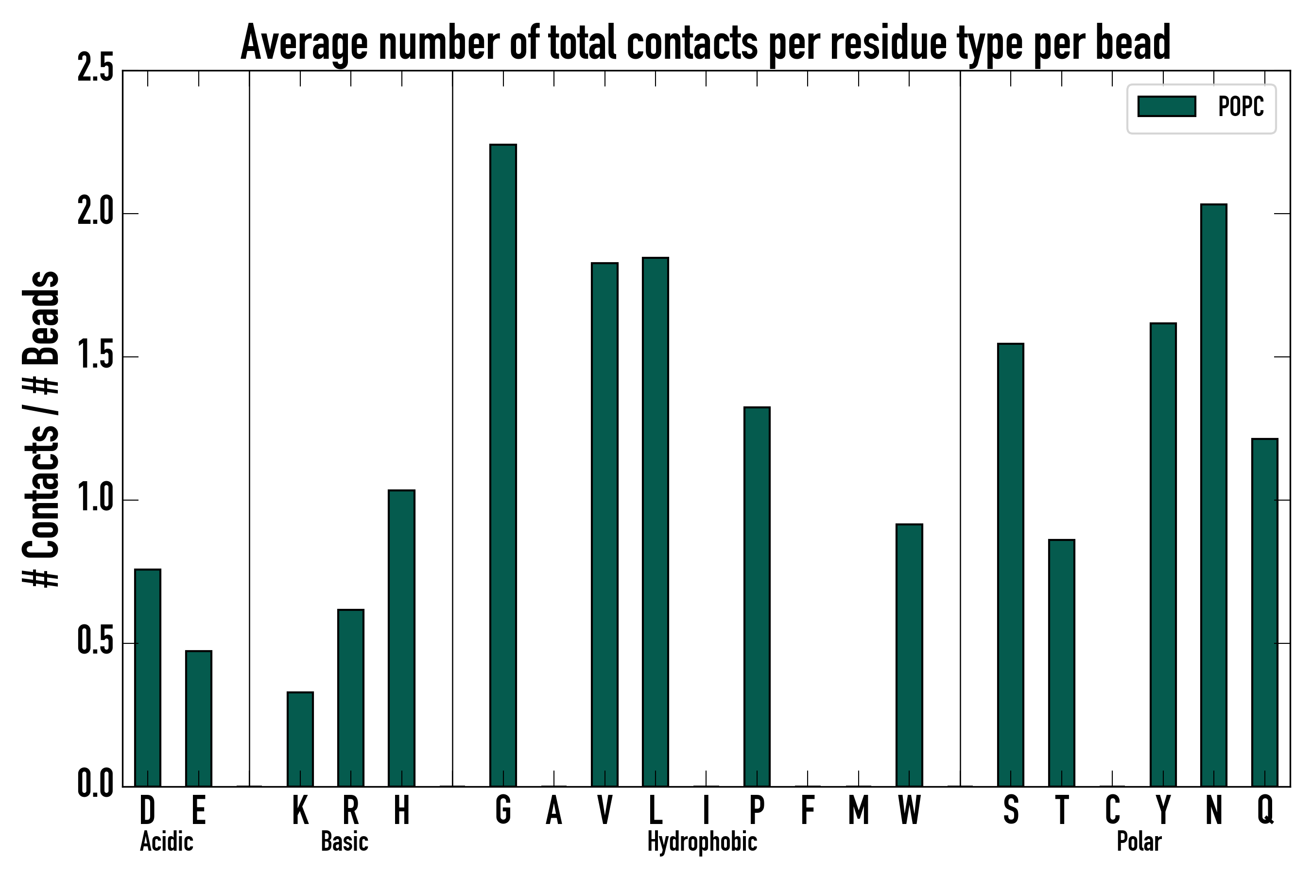 Number of total contacts per residue type: