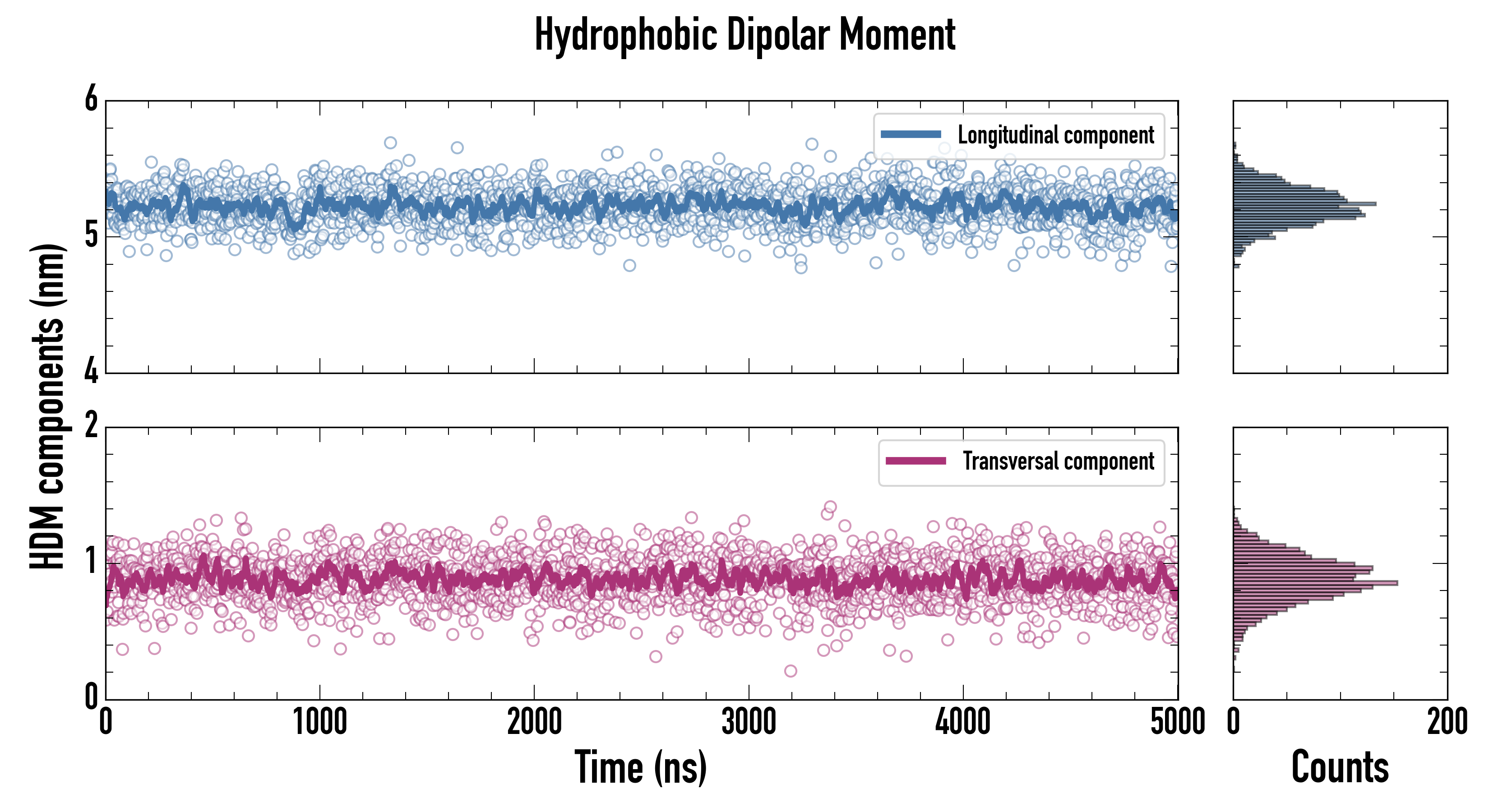 Longitudinal (e nm): 5.09 Transversal (e nm): 0.37 Hydrophobic Dipolar Moment (nm): 5.5