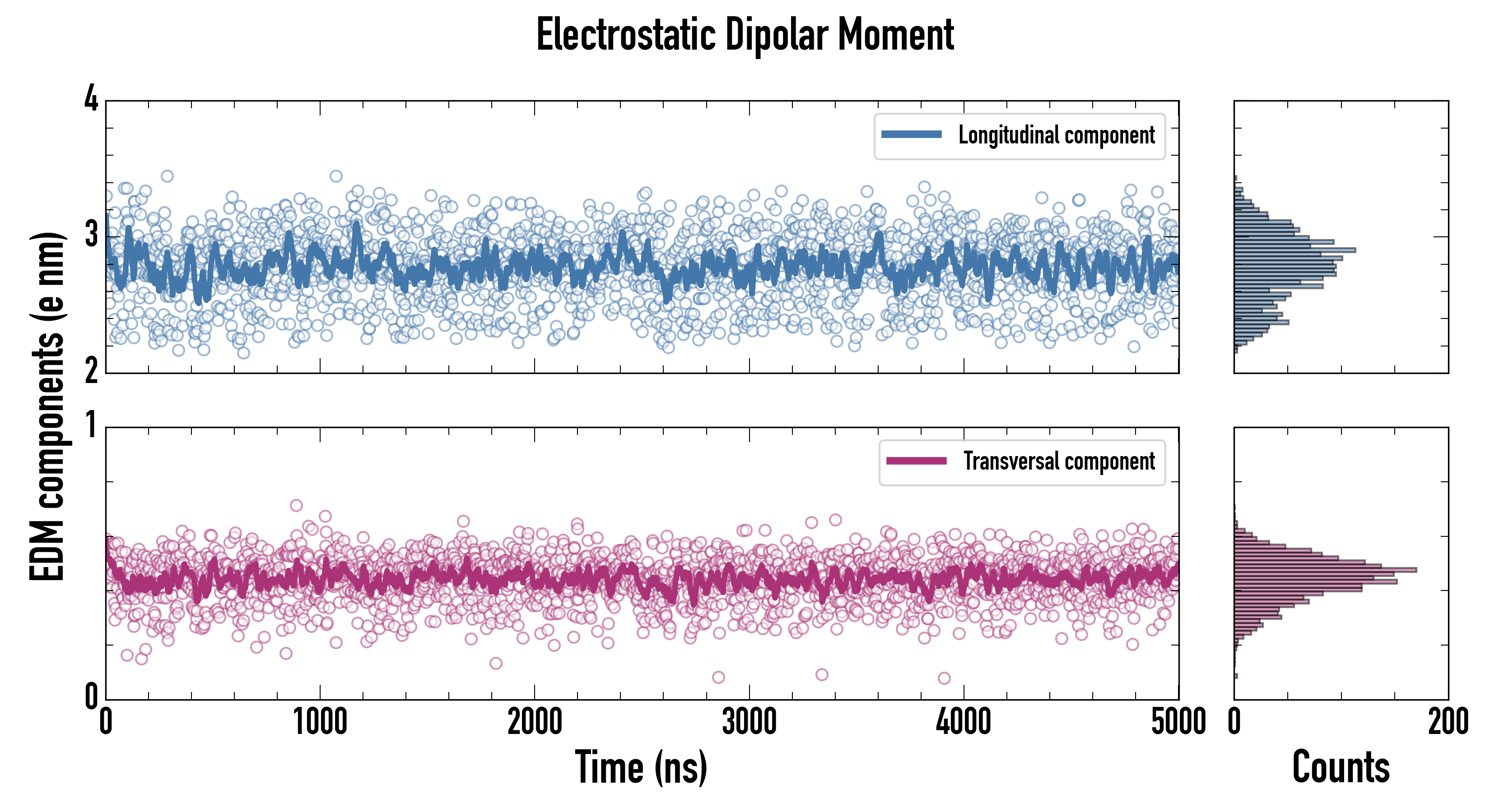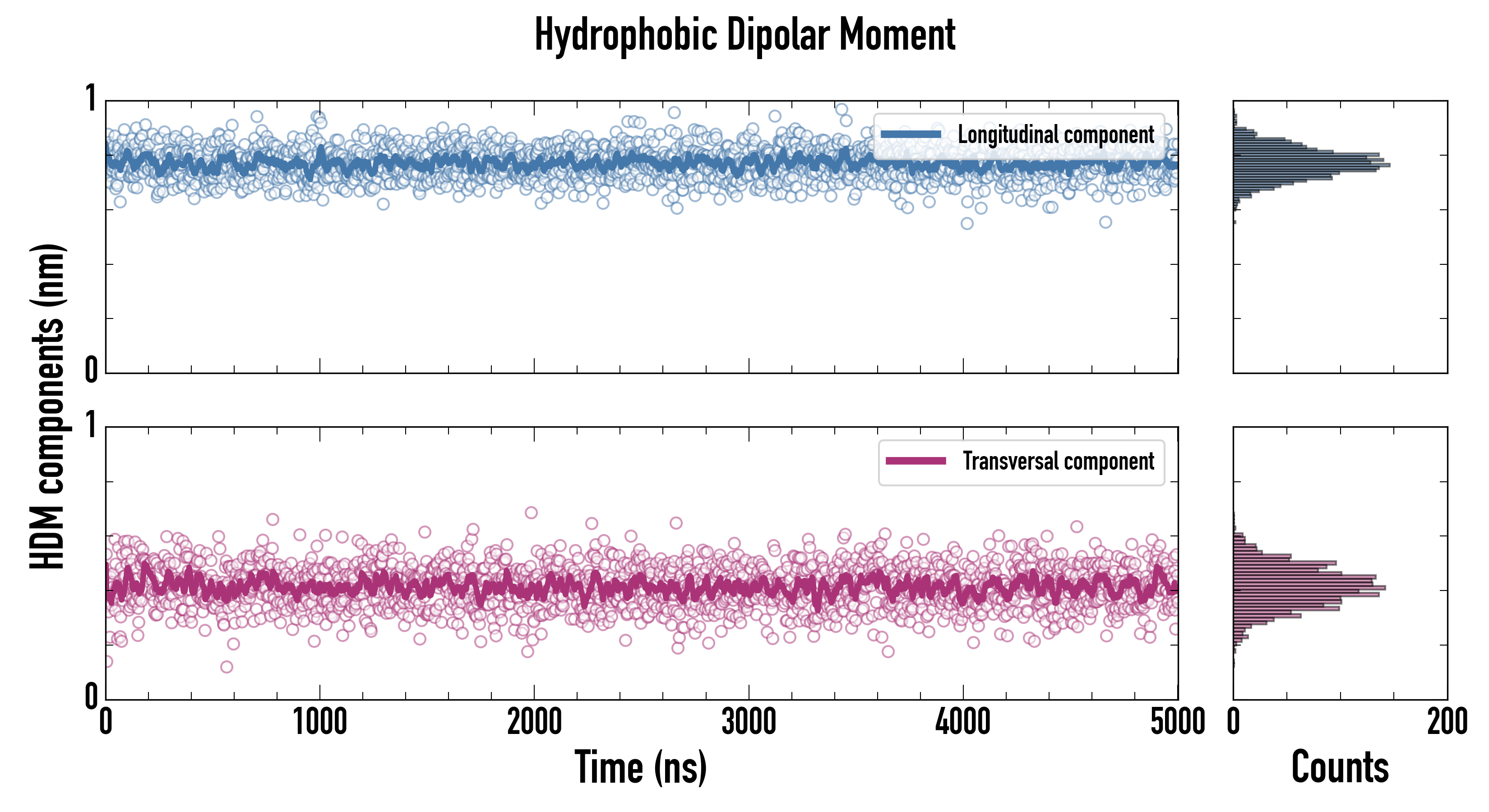 Longitudinal (e nm): 3.07 Transversal (e nm): 0.8 Hydrophobic Dipolar Moment (nm): 0.76