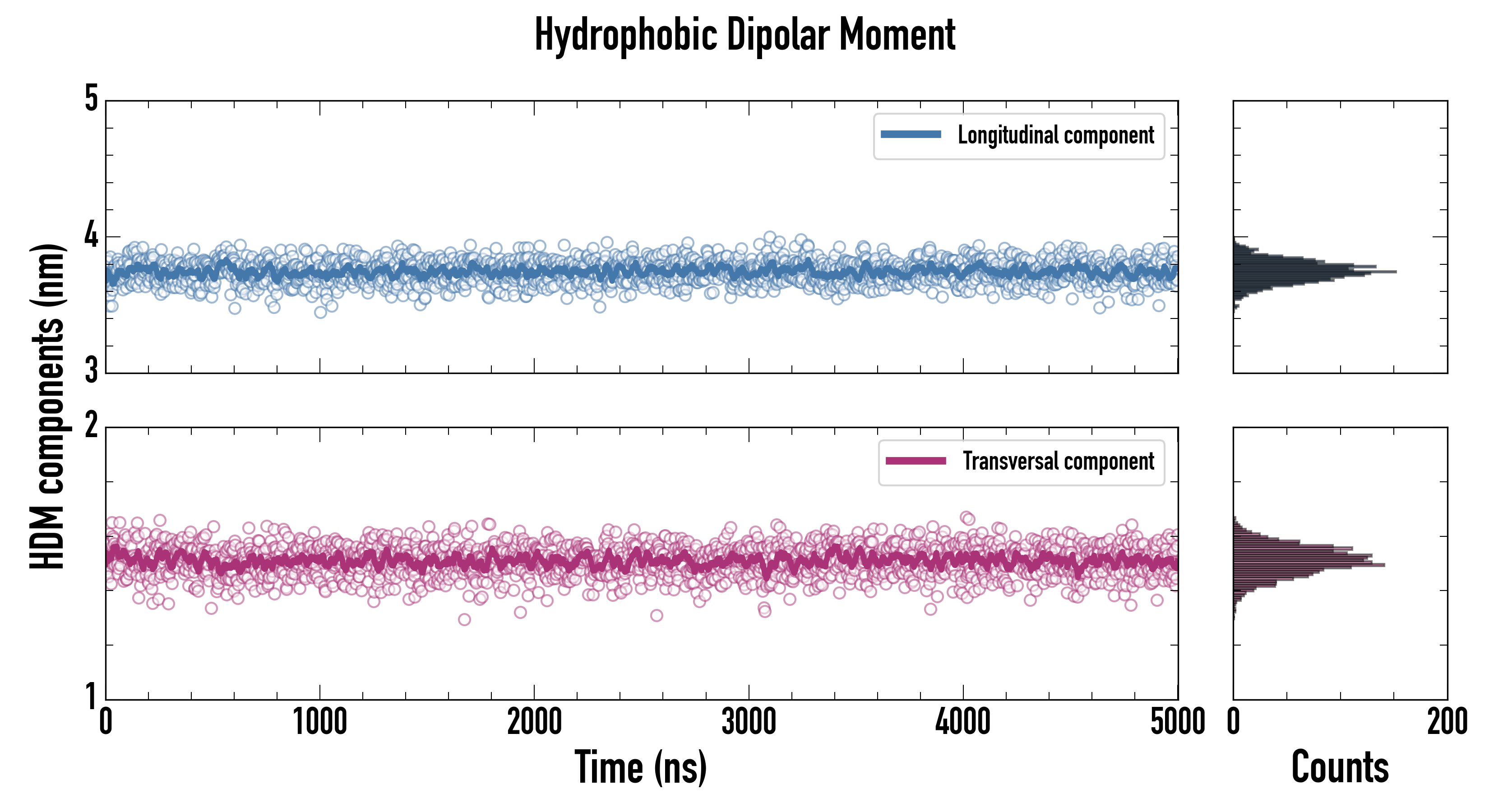 Longitudinal (e nm): 4.37 Transversal (e nm): 1.89 Hydrophobic Dipolar Moment (nm): 4.13