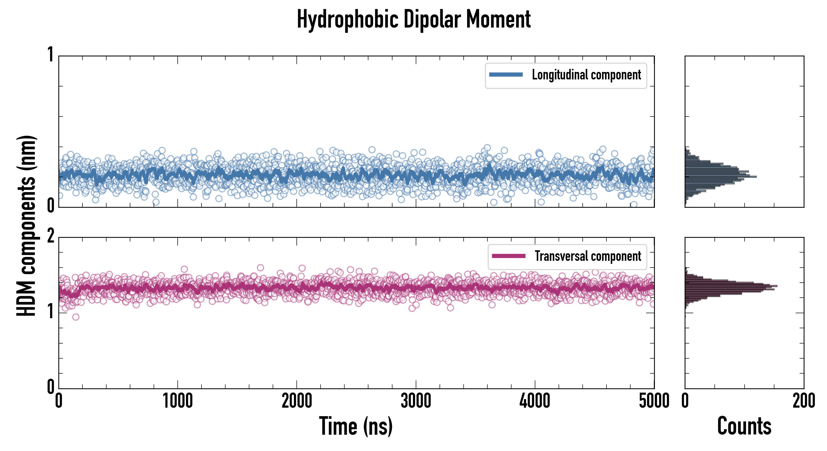 Longitudinal (e nm): 4.5 Transversal (e nm): 1.03 Hydrophobic Dipolar Moment (nm): 0.98