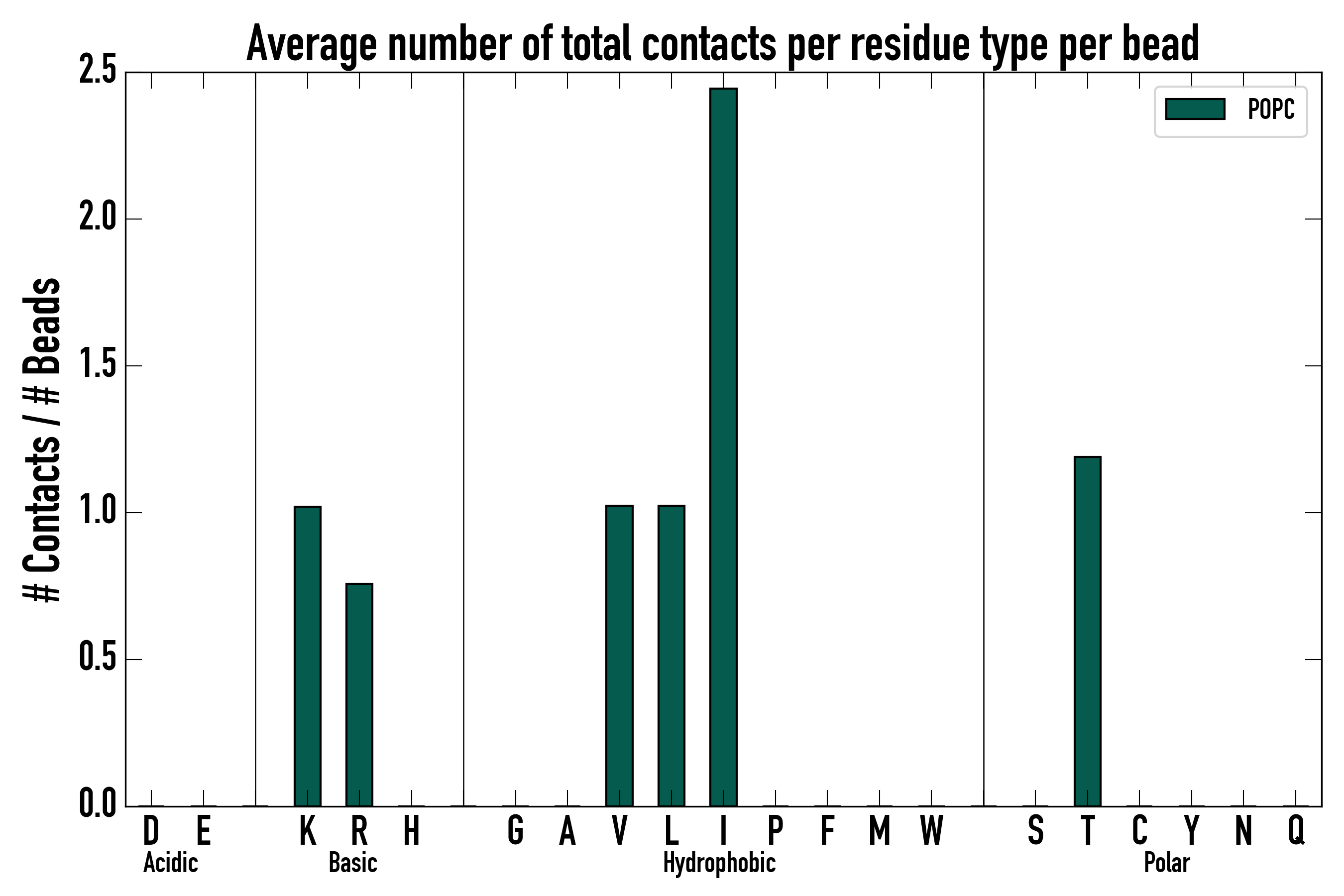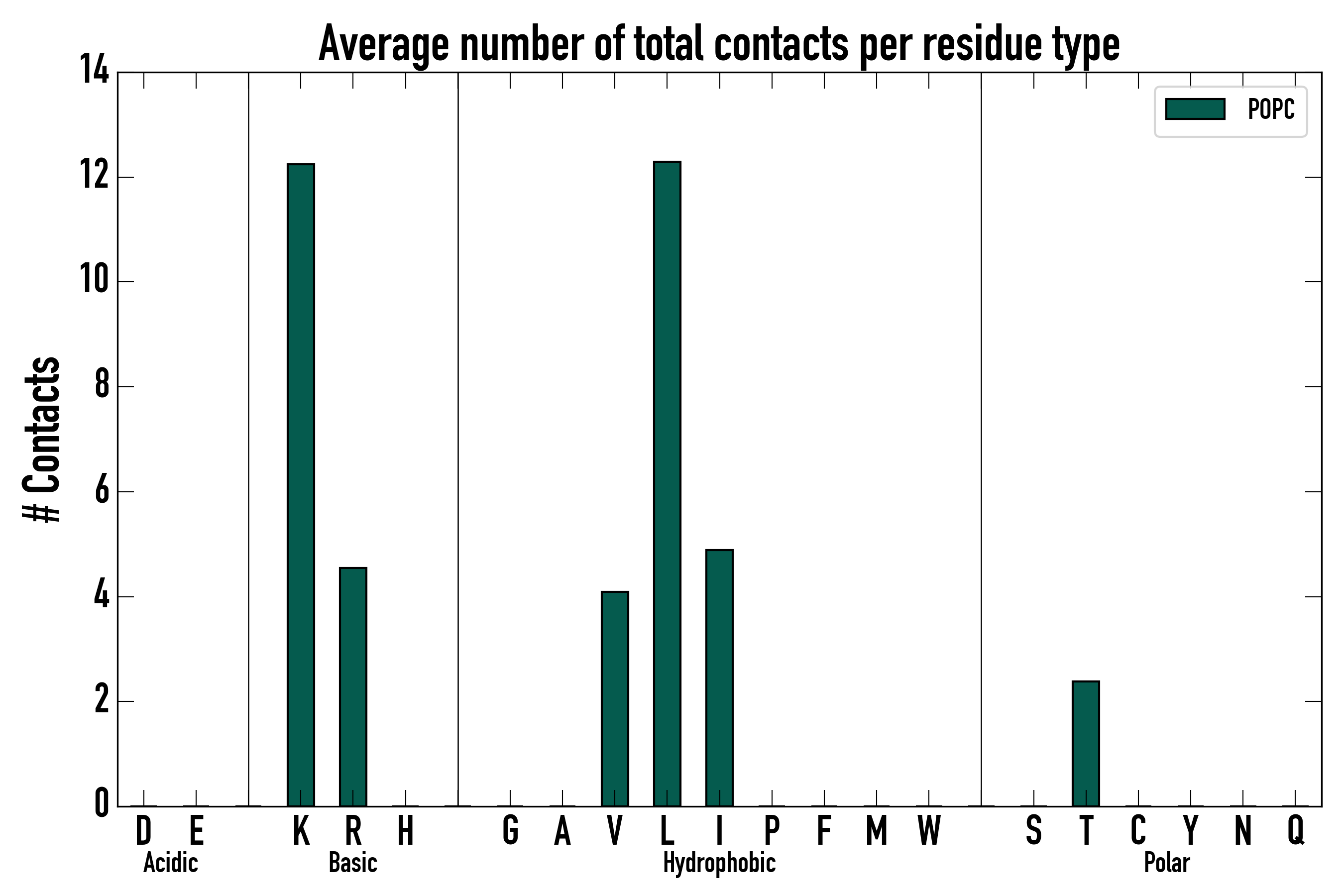 Number of total contacts per residue type: