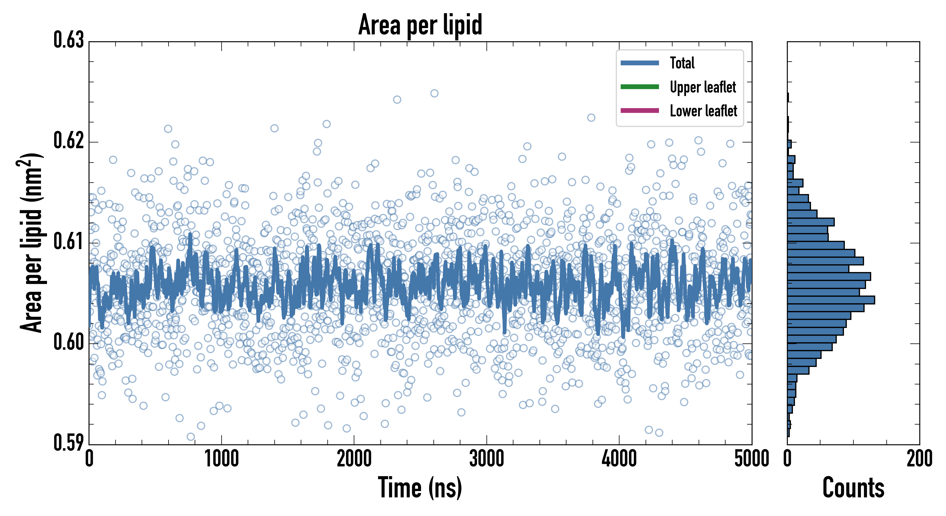 Upper leaflet (nm2): 0.605899000 ± 0.000864775