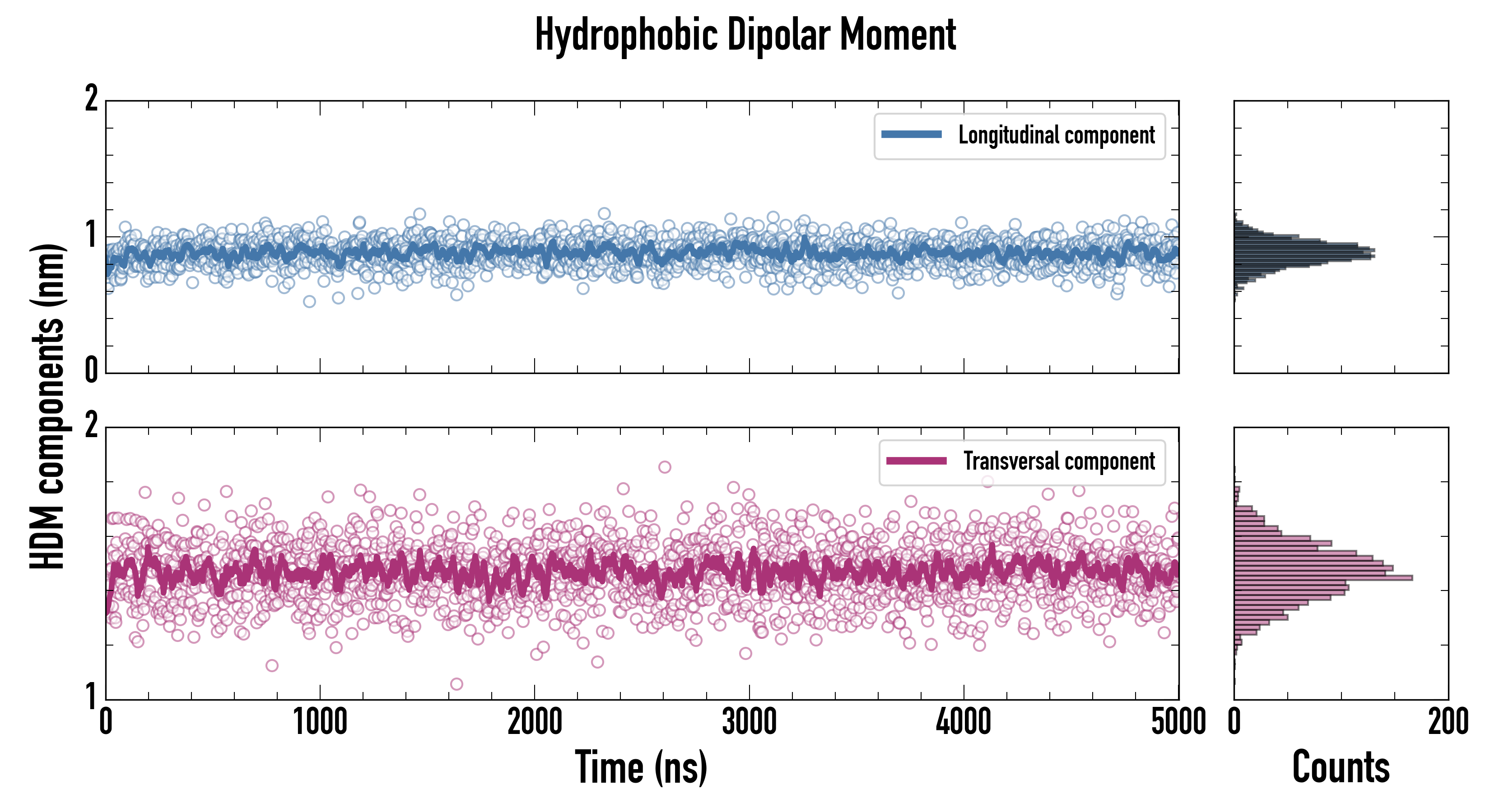 Longitudinal (e nm): 3.86 Transversal (e nm): 1.11 Hydrophobic Dipolar Moment (nm): 1.27