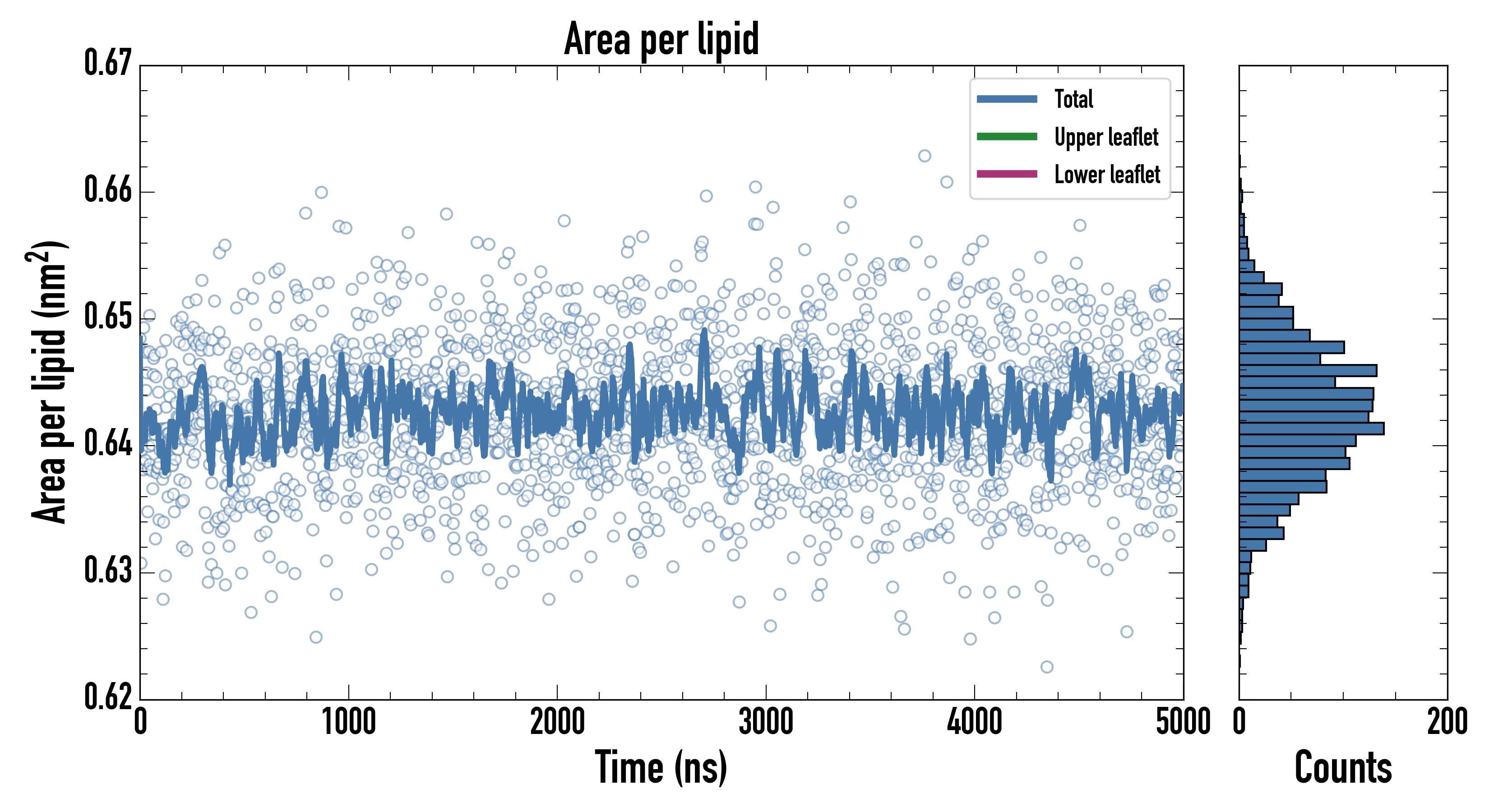 Lower leaflet (nm2): 0.64258200 ± 0.00102937
