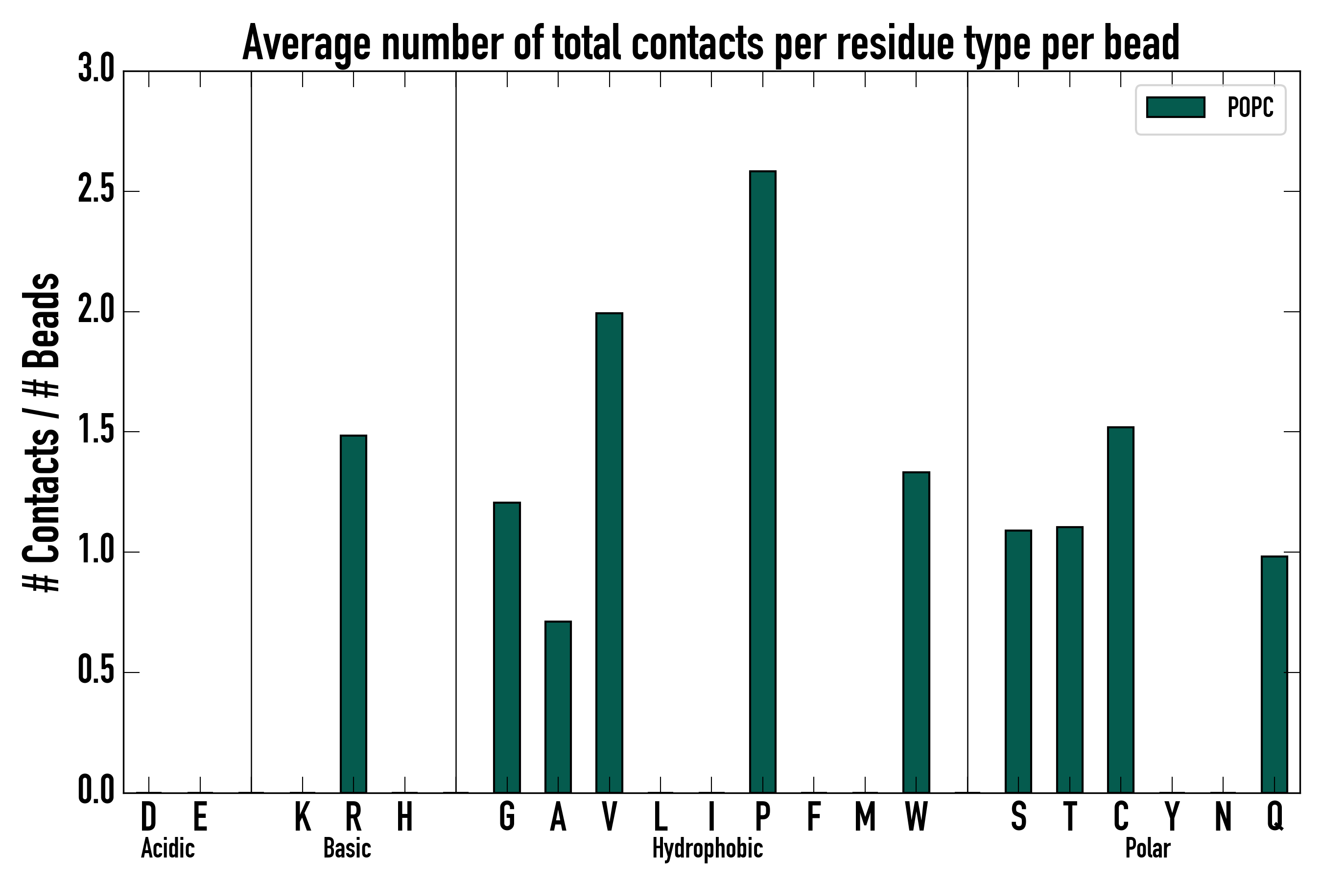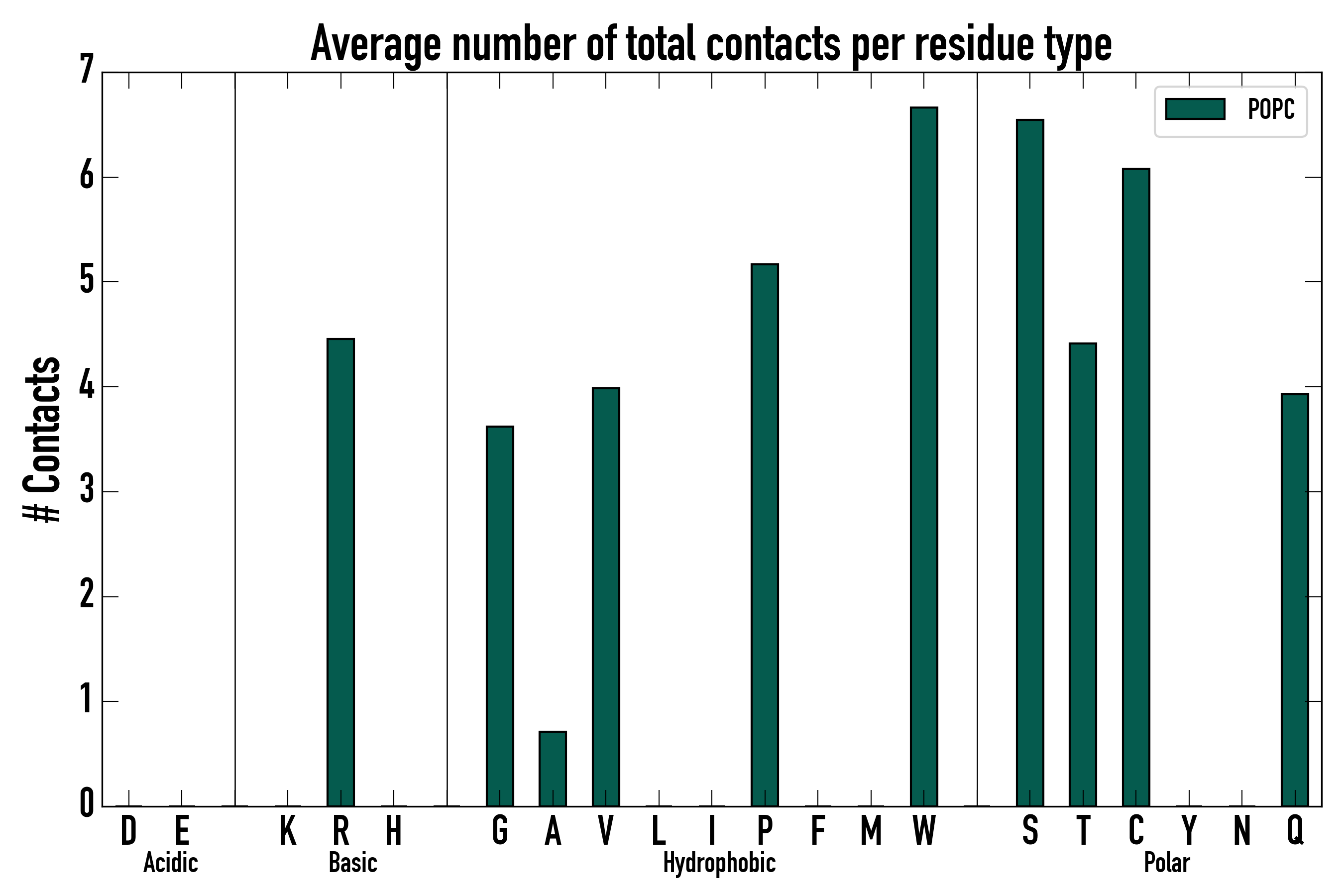 Number of total contacts per residue type: