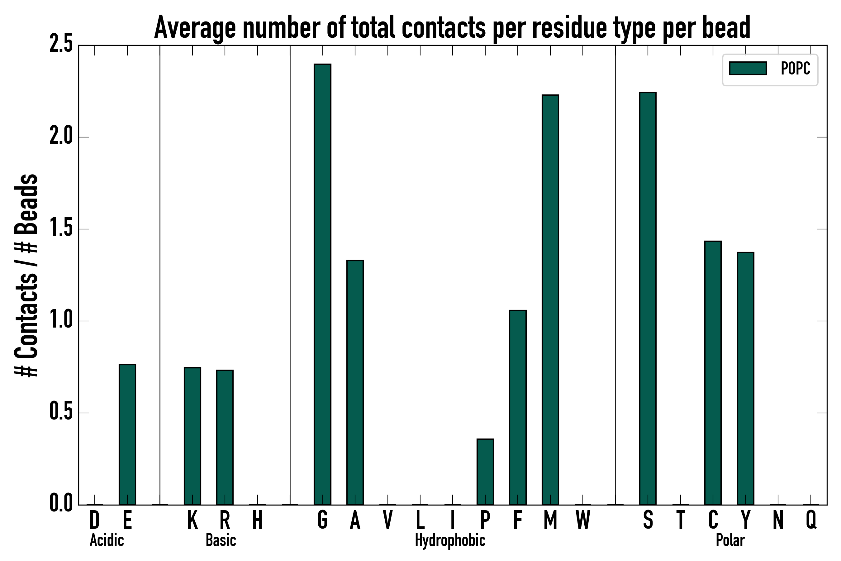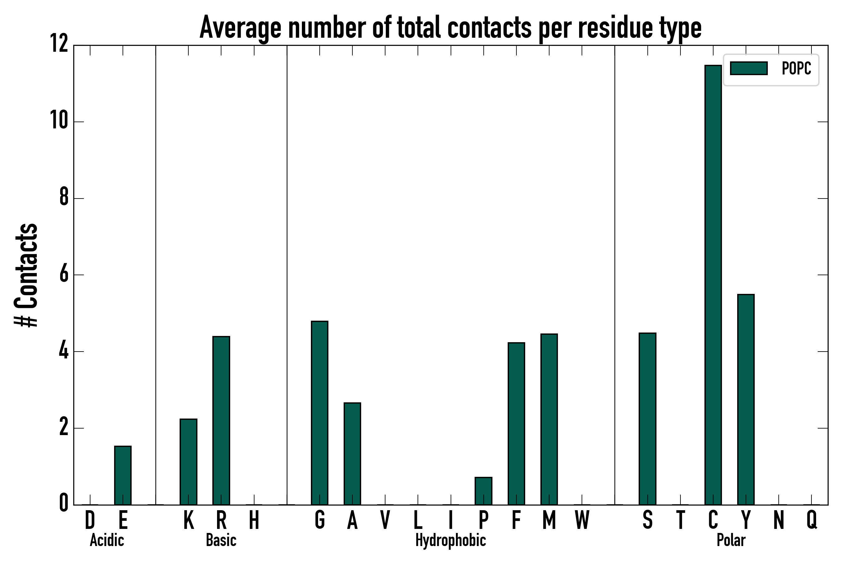 Number of total contacts per residue type: