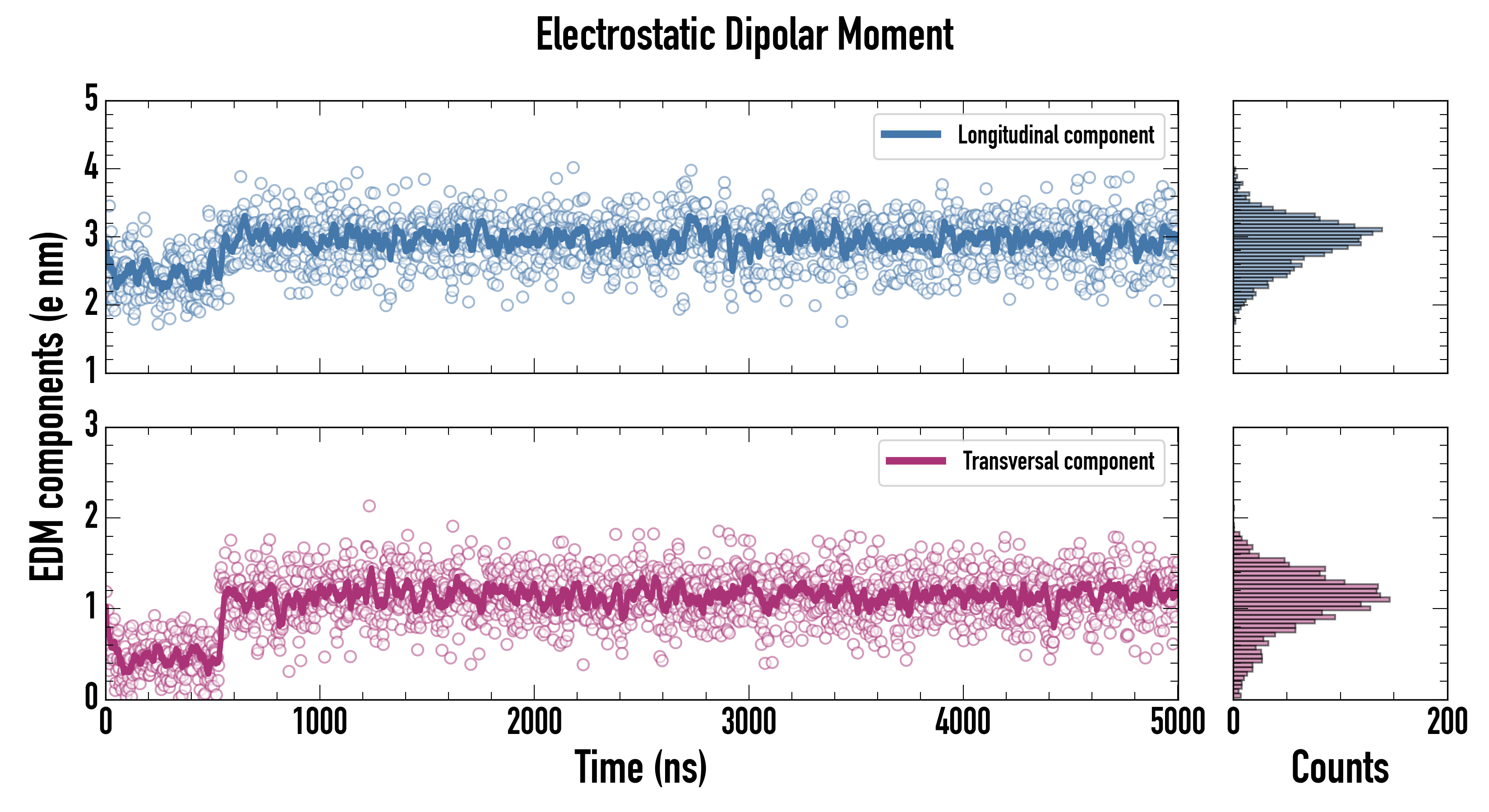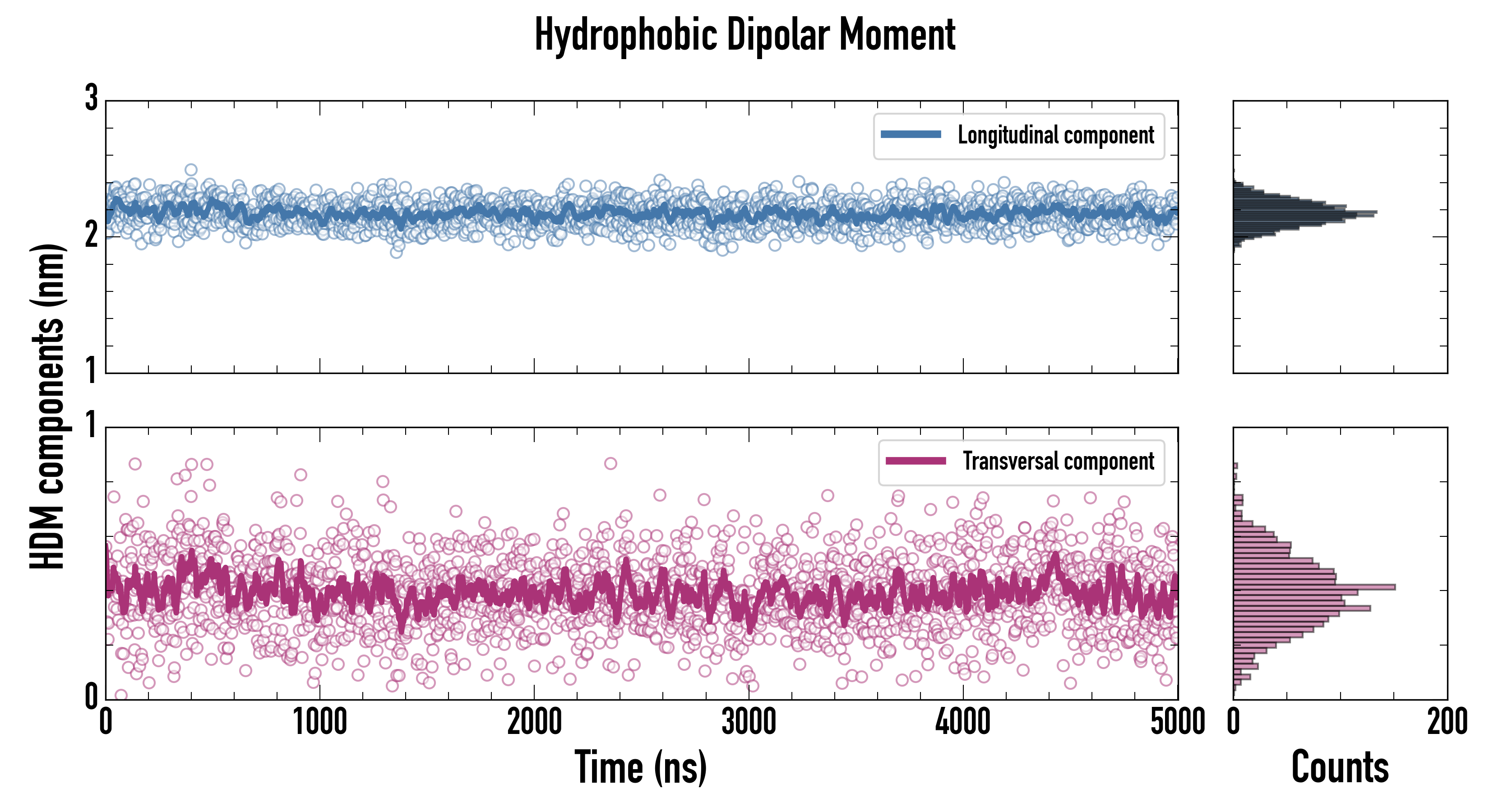 Longitudinal (e nm): 3.54 Transversal (e nm): 1.43 Hydrophobic Dipolar Moment (nm): 2.35