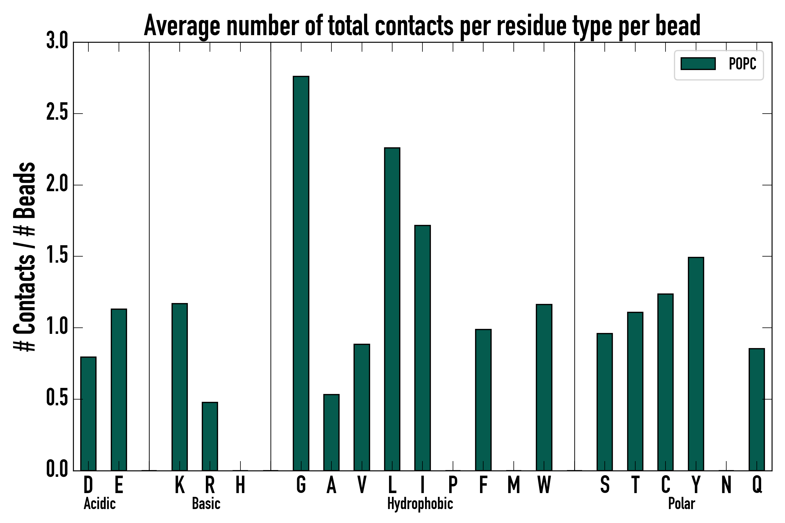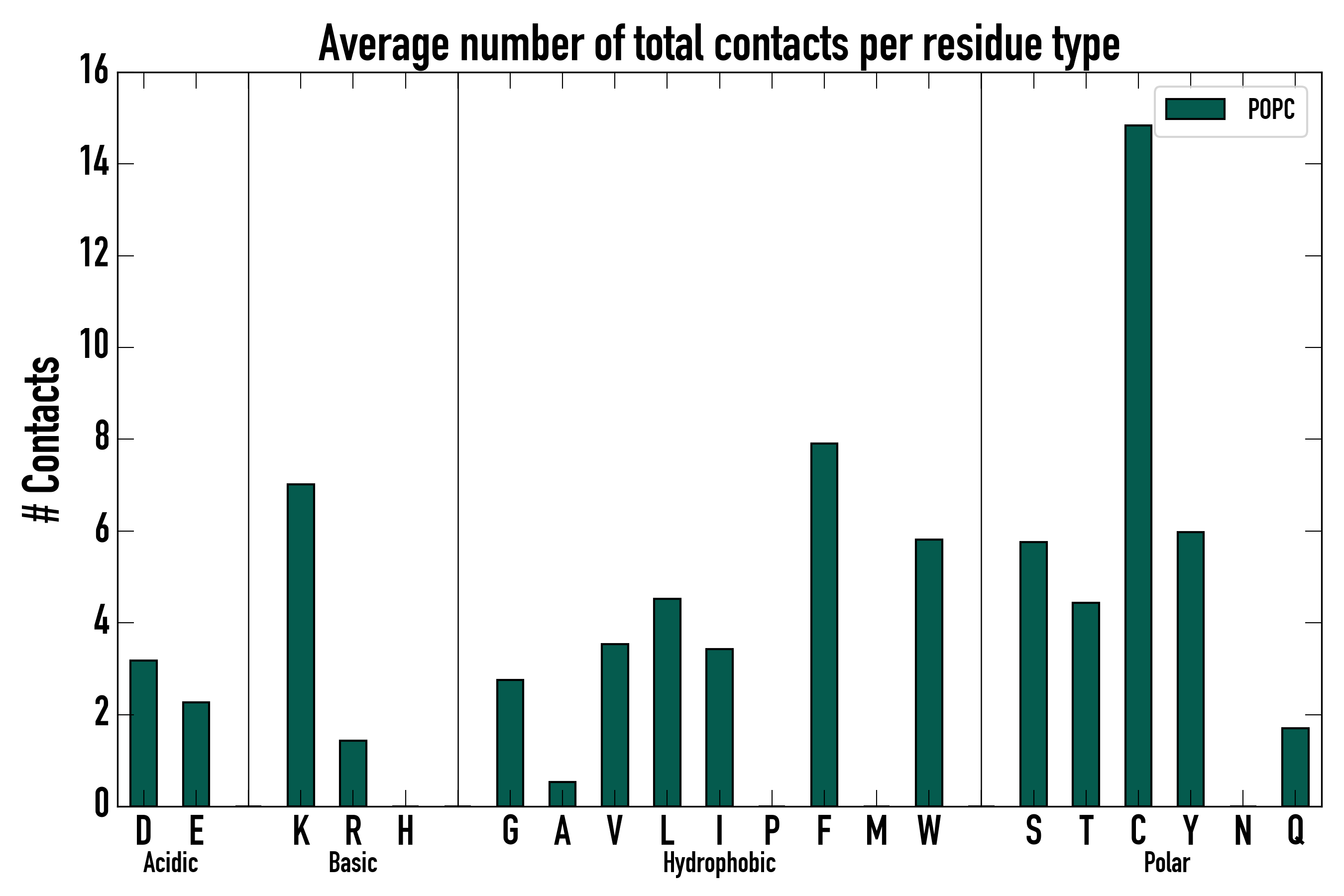 Number of total contacts per residue type: