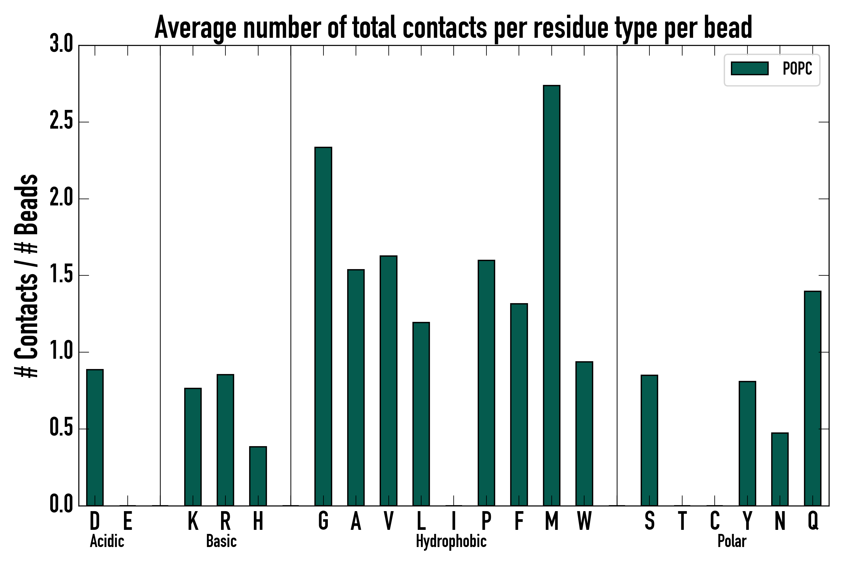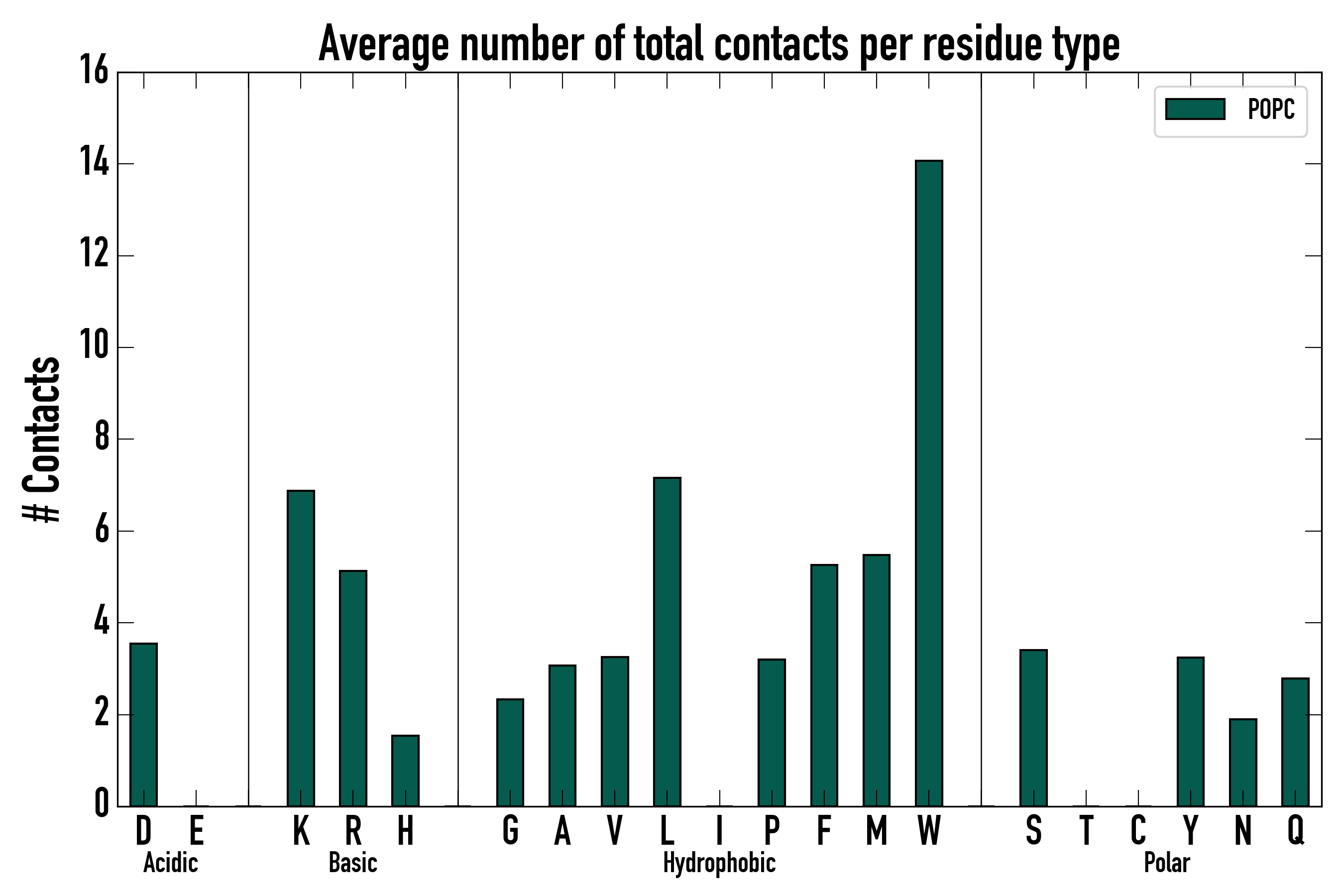 Number of total contacts per residue type: