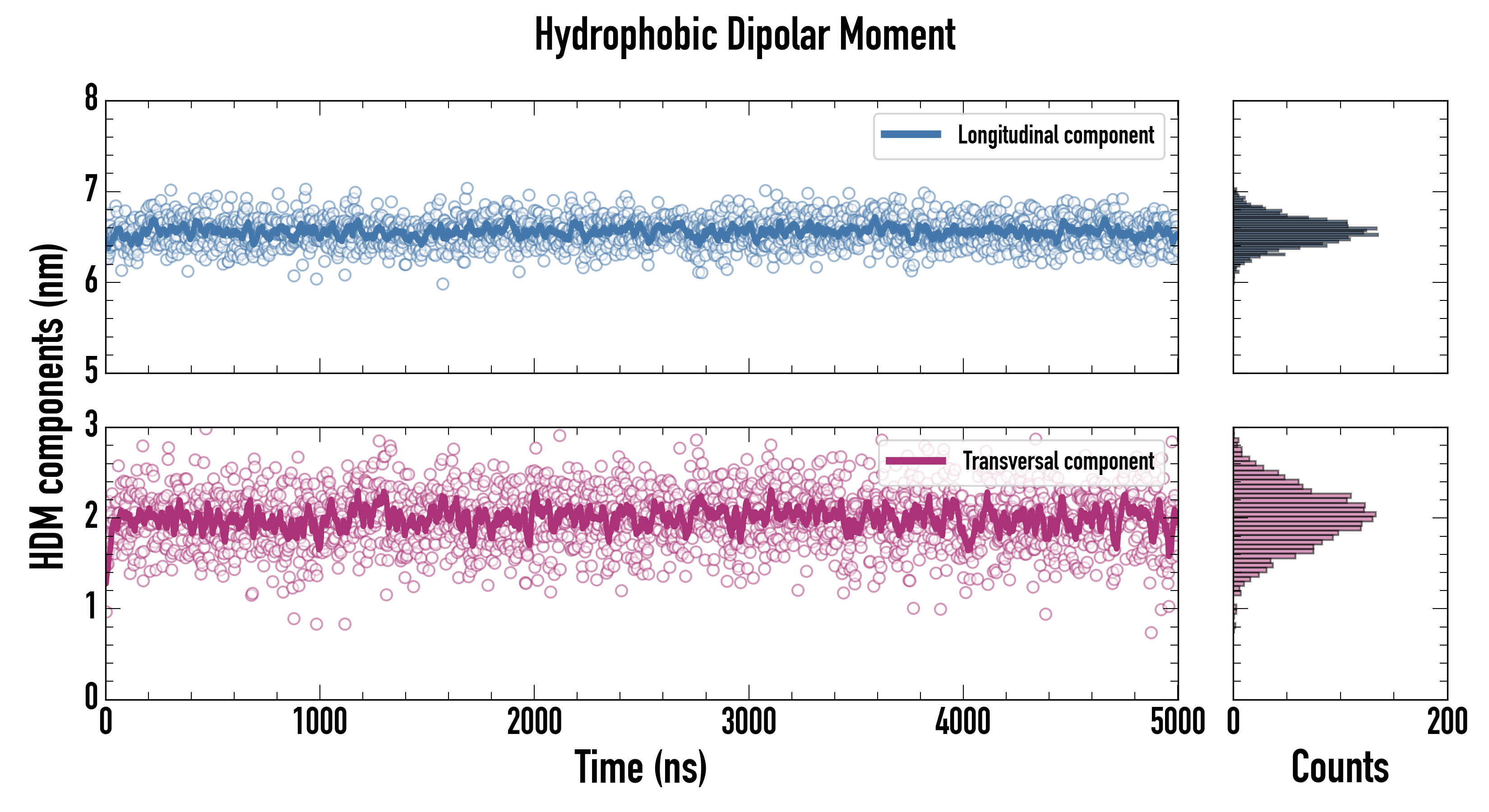 Longitudinal (e nm): 6.37 Transversal (e nm): 0.58 Hydrophobic Dipolar Moment (nm): 6.81
