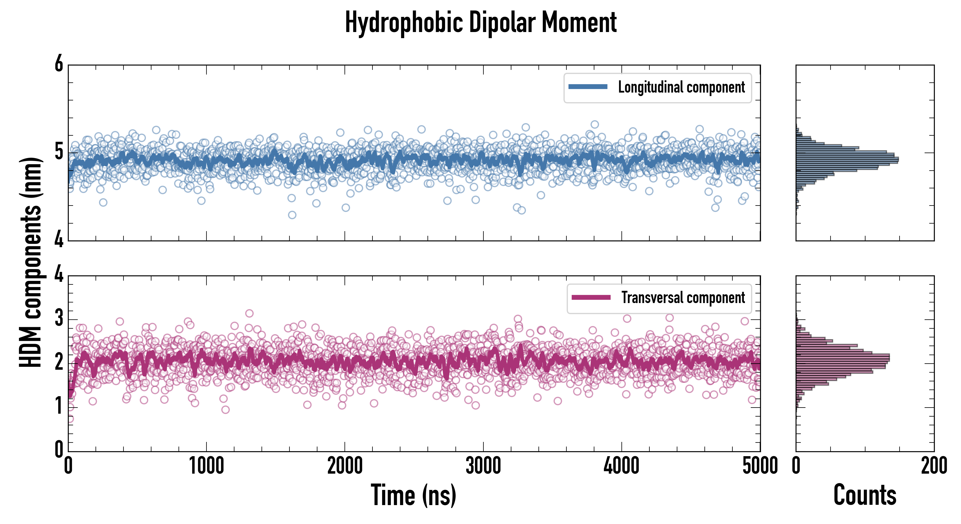 Longitudinal (e nm): 6.35 Transversal (e nm): 0.55 Hydrophobic Dipolar Moment (nm): 5.18