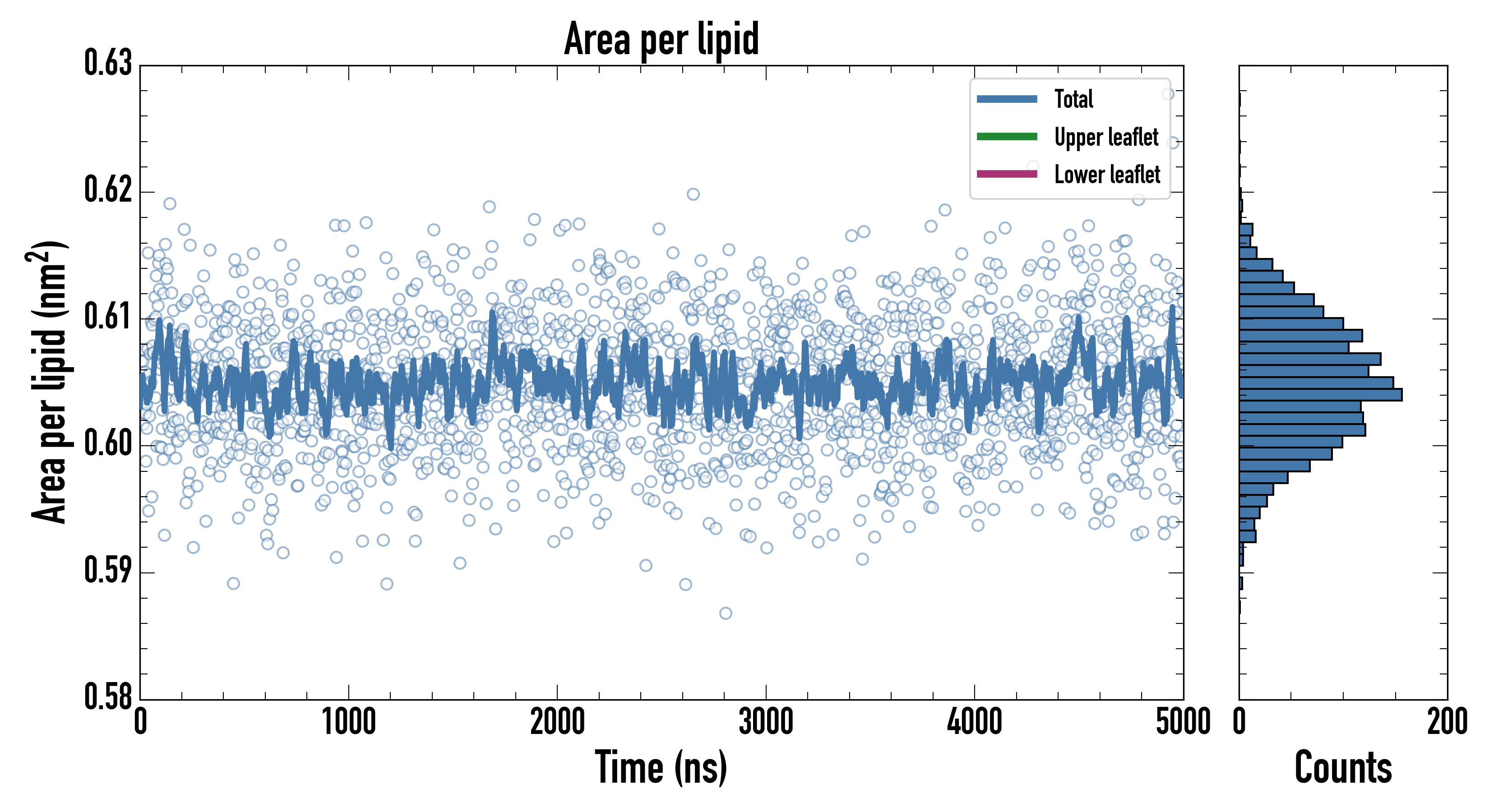 Upper leaflet (nm2): 0.605388000 ± 0.000874604