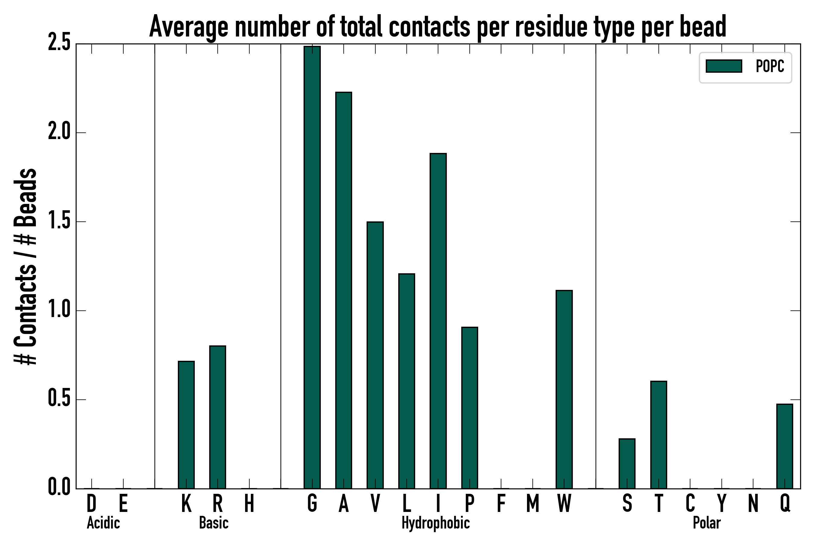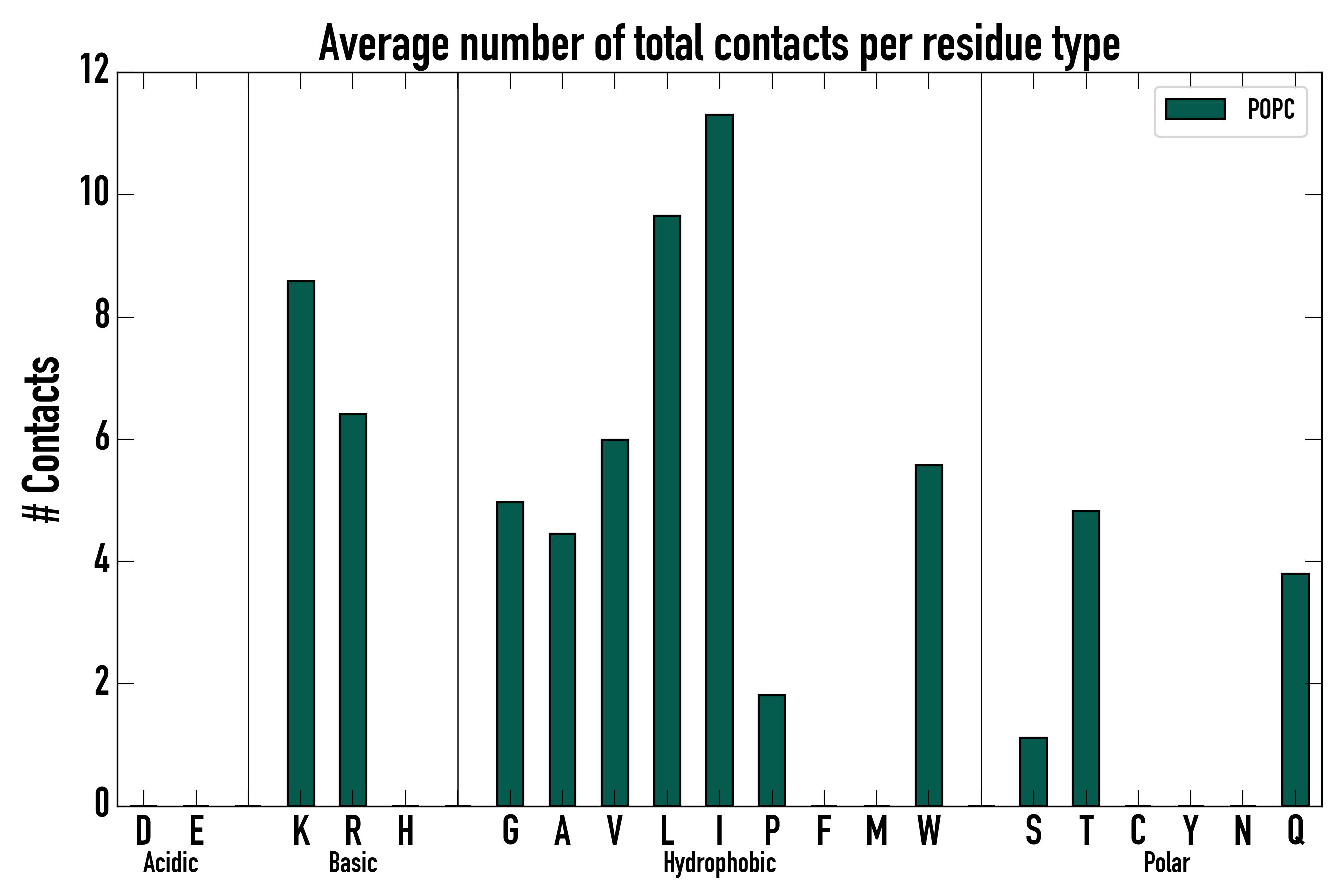 Number of total contacts per residue type: