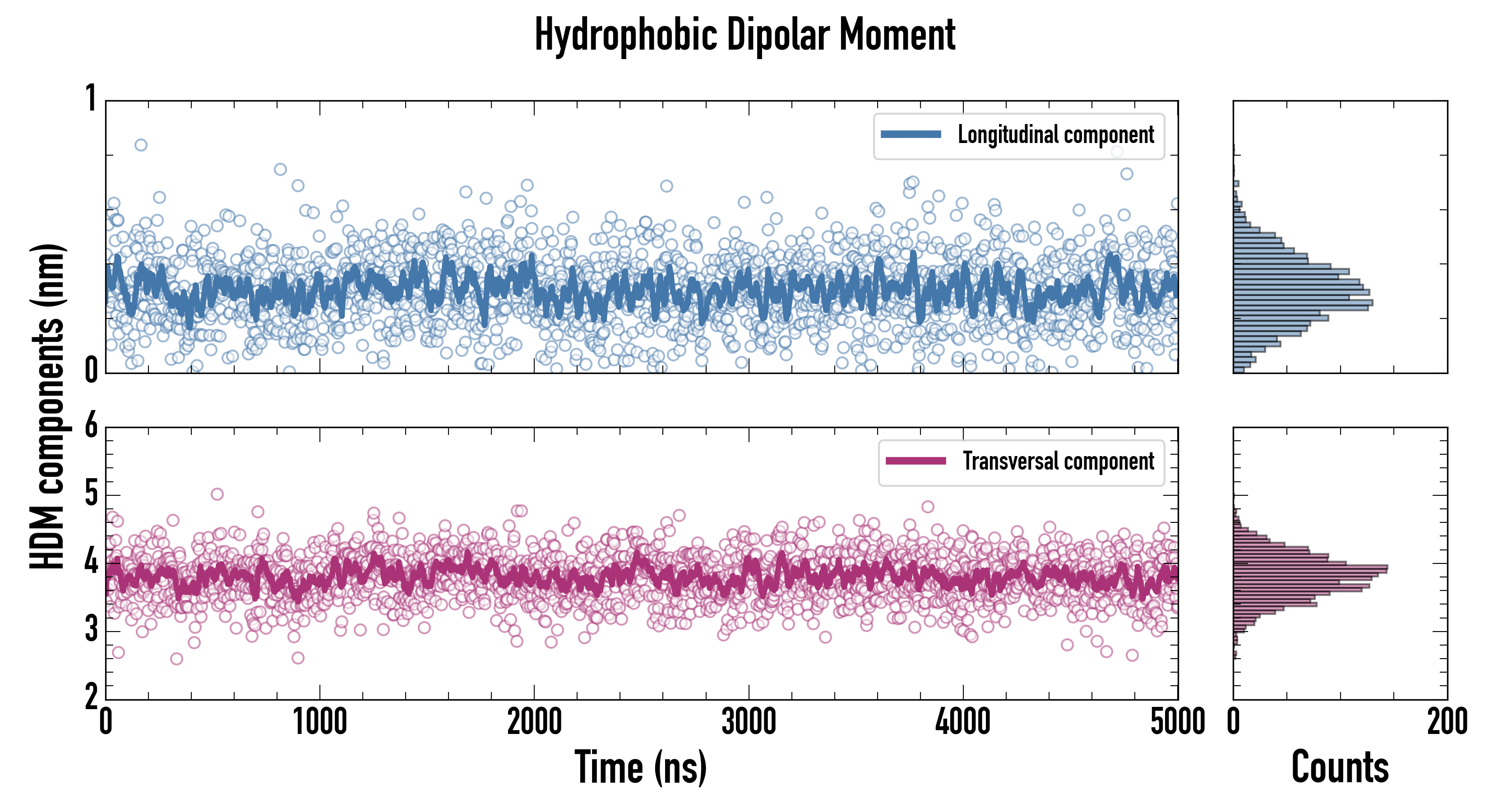 Longitudinal (e nm): 9.77 Transversal (e nm): 0.66 Hydrophobic Dipolar Moment (nm): 2.66
