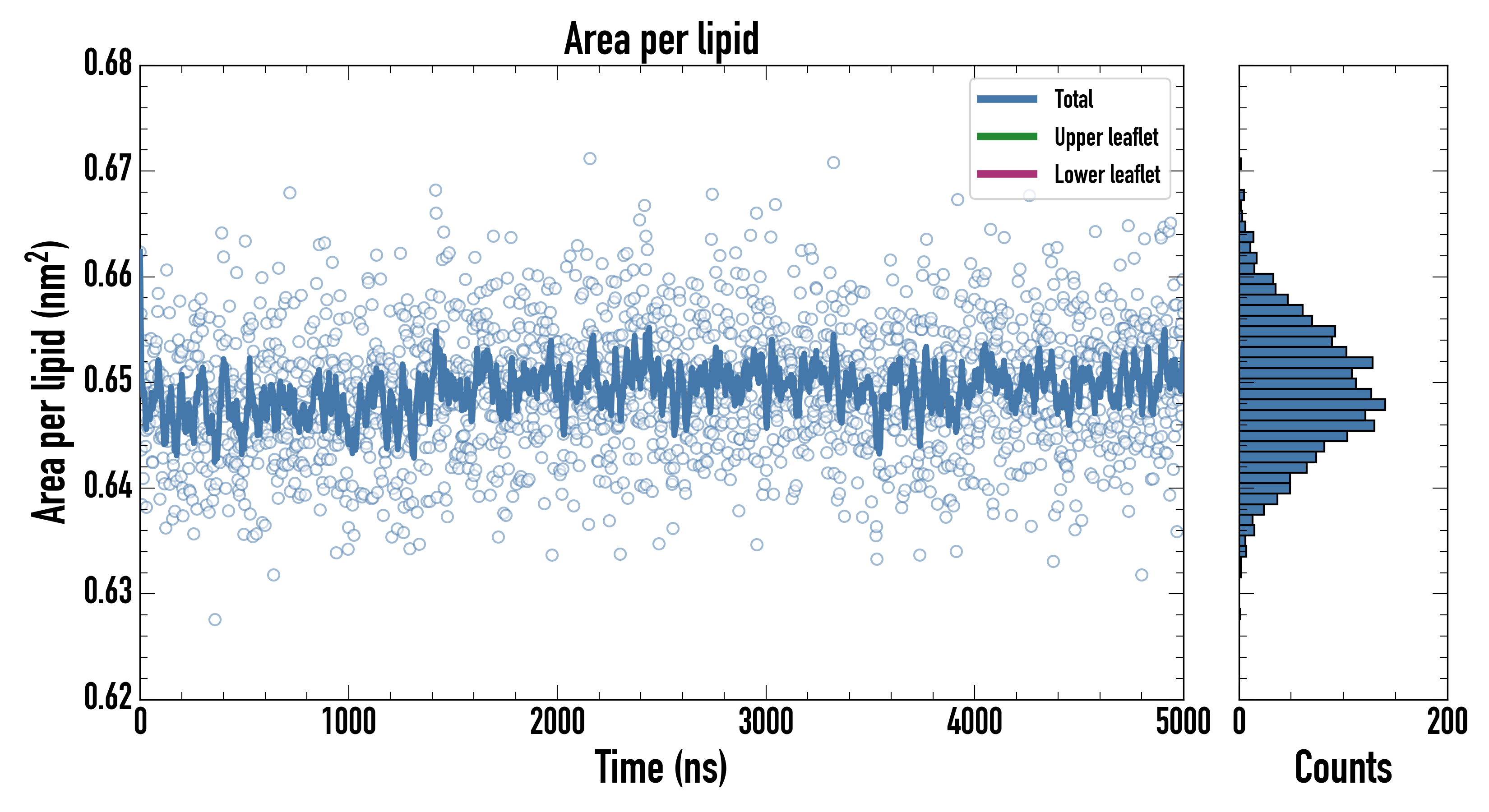 Upper leaflet (nm2): 0.650204000 ± 0.000955938
