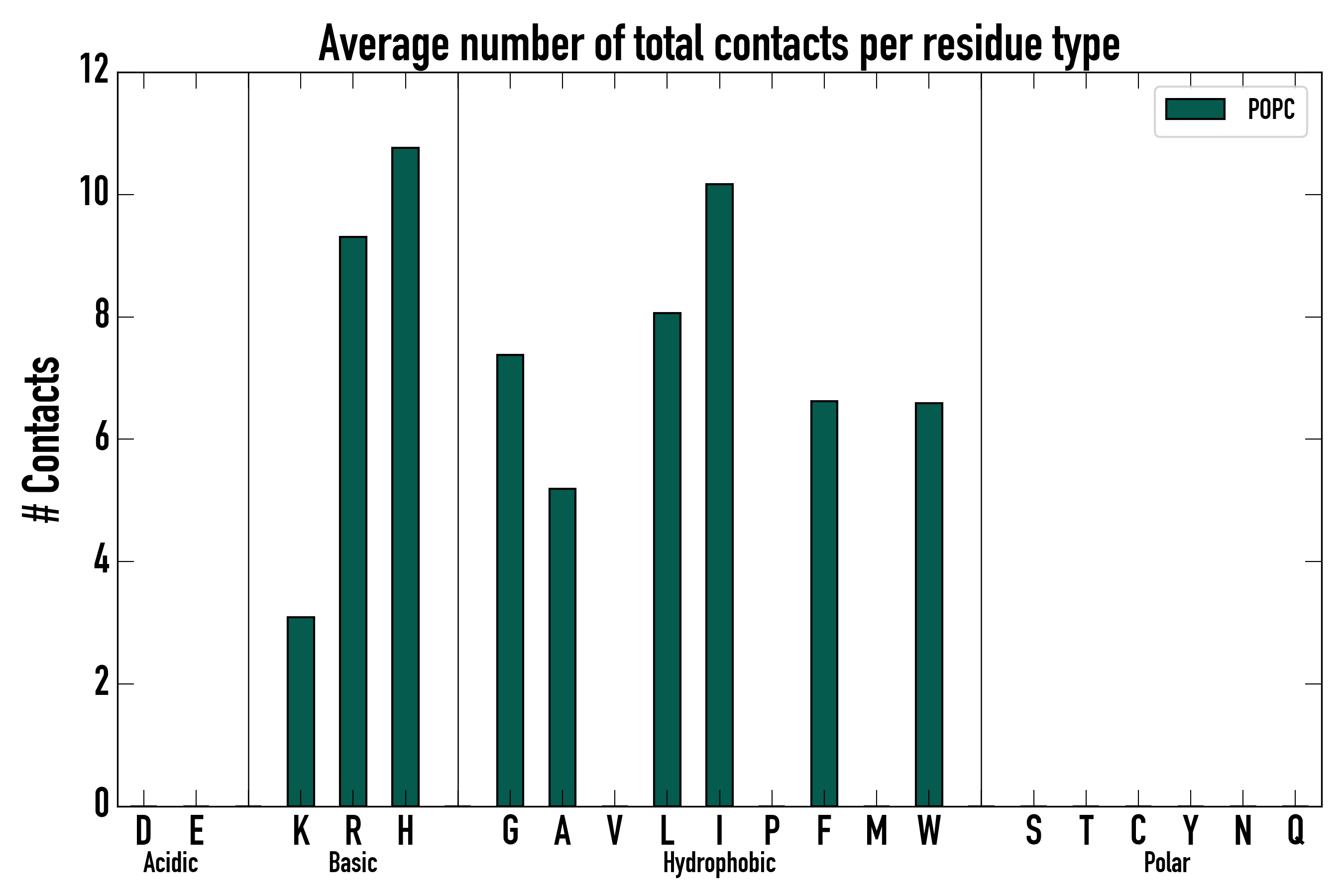 Number of total contacts per residue type: