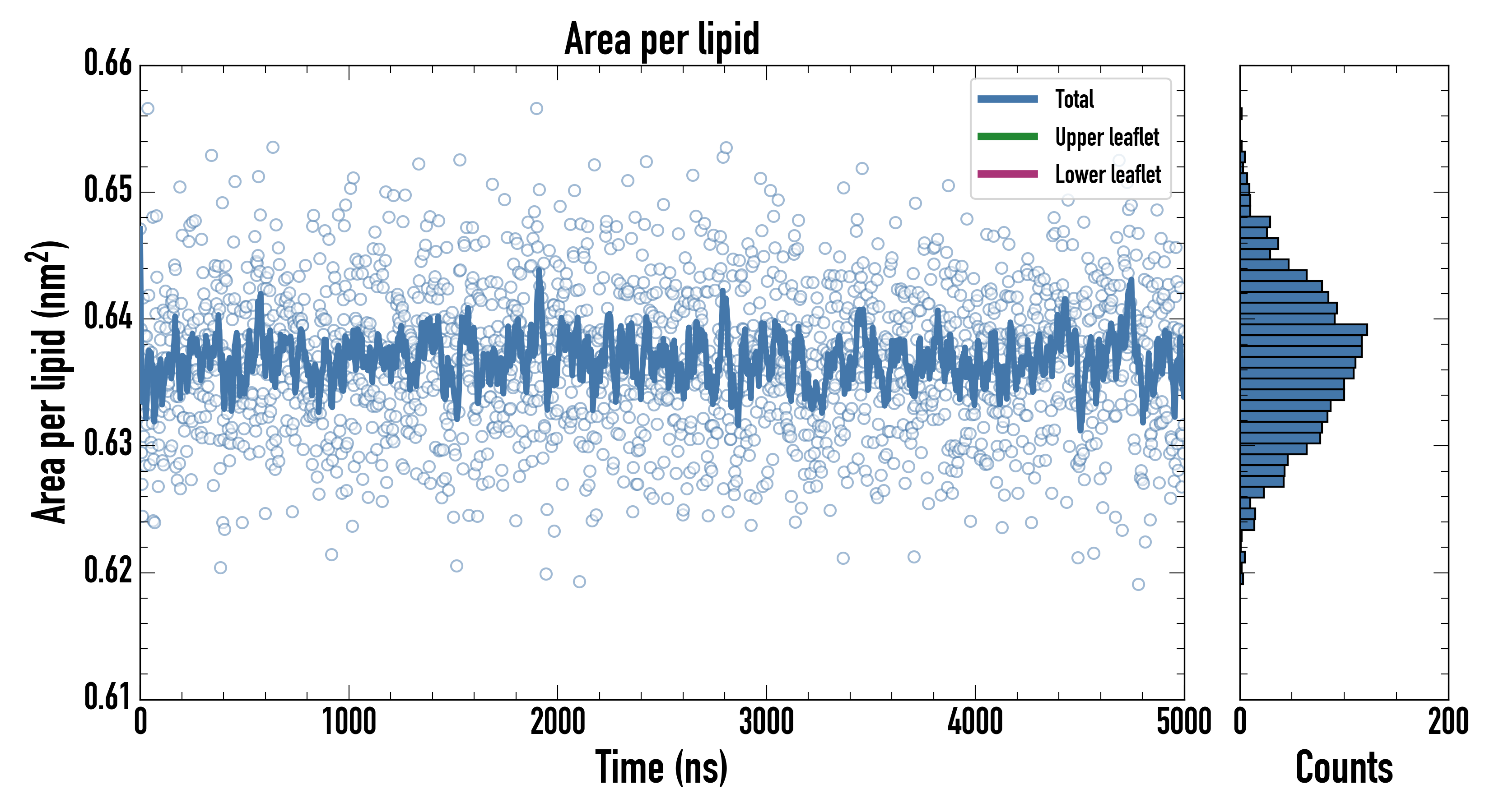 Lower leaflet (nm2): 0.63680400 ± 0.00107612