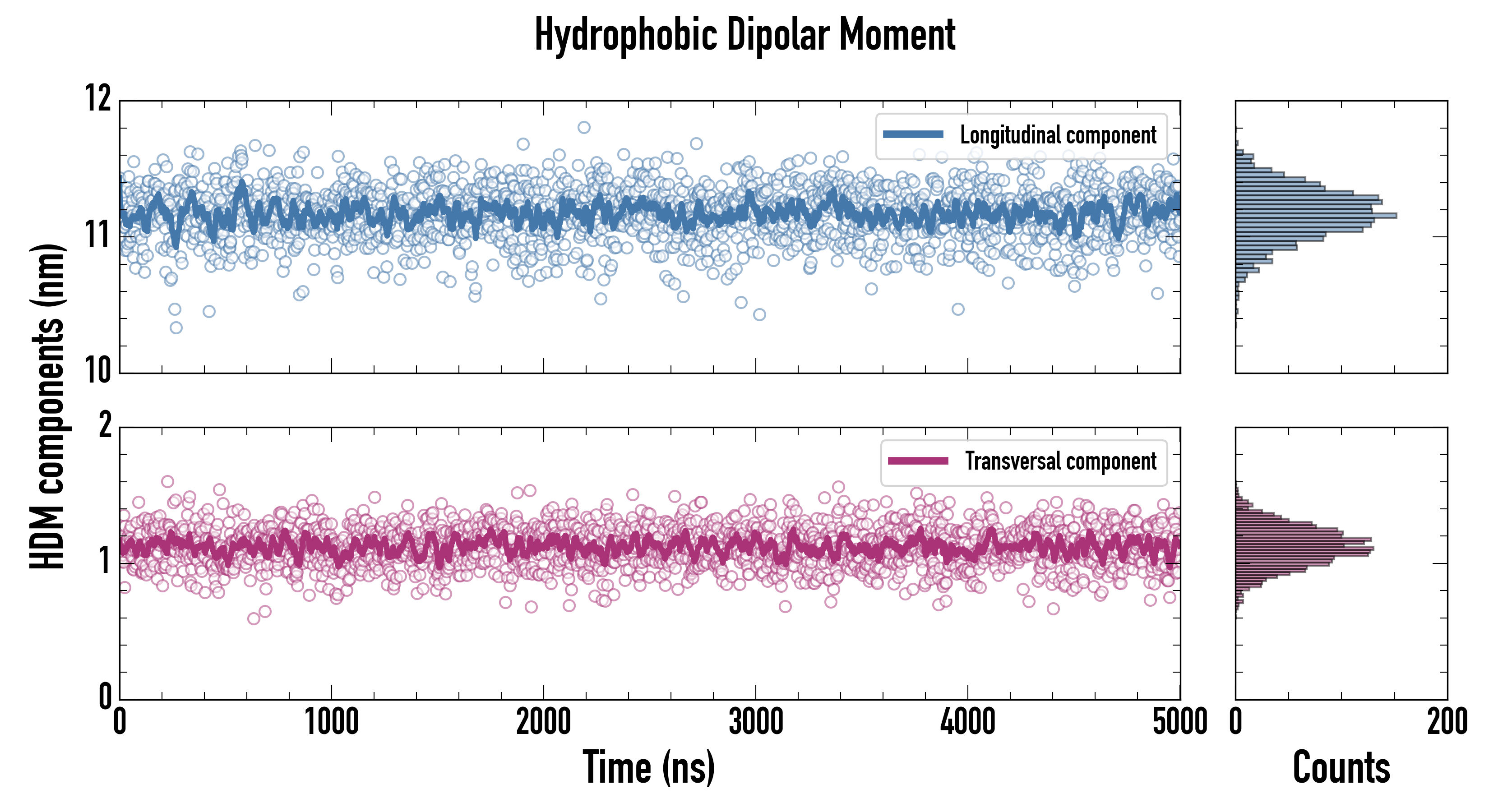 Longitudinal (e nm): 1.96 Transversal (e nm): 0.4 Hydrophobic Dipolar Moment (nm): 11.77